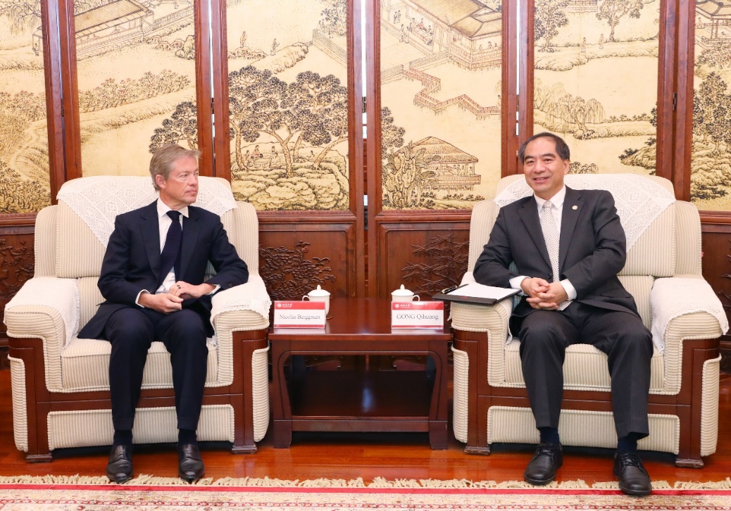 4月24日上午,博古睿研究院主席、创始人尼古拉斯·博古睿(Nicolas Berggruen)一行访问北京大学。北京大学校长龚旗煌,副校长、教务长王博在临湖轩会见来宾。