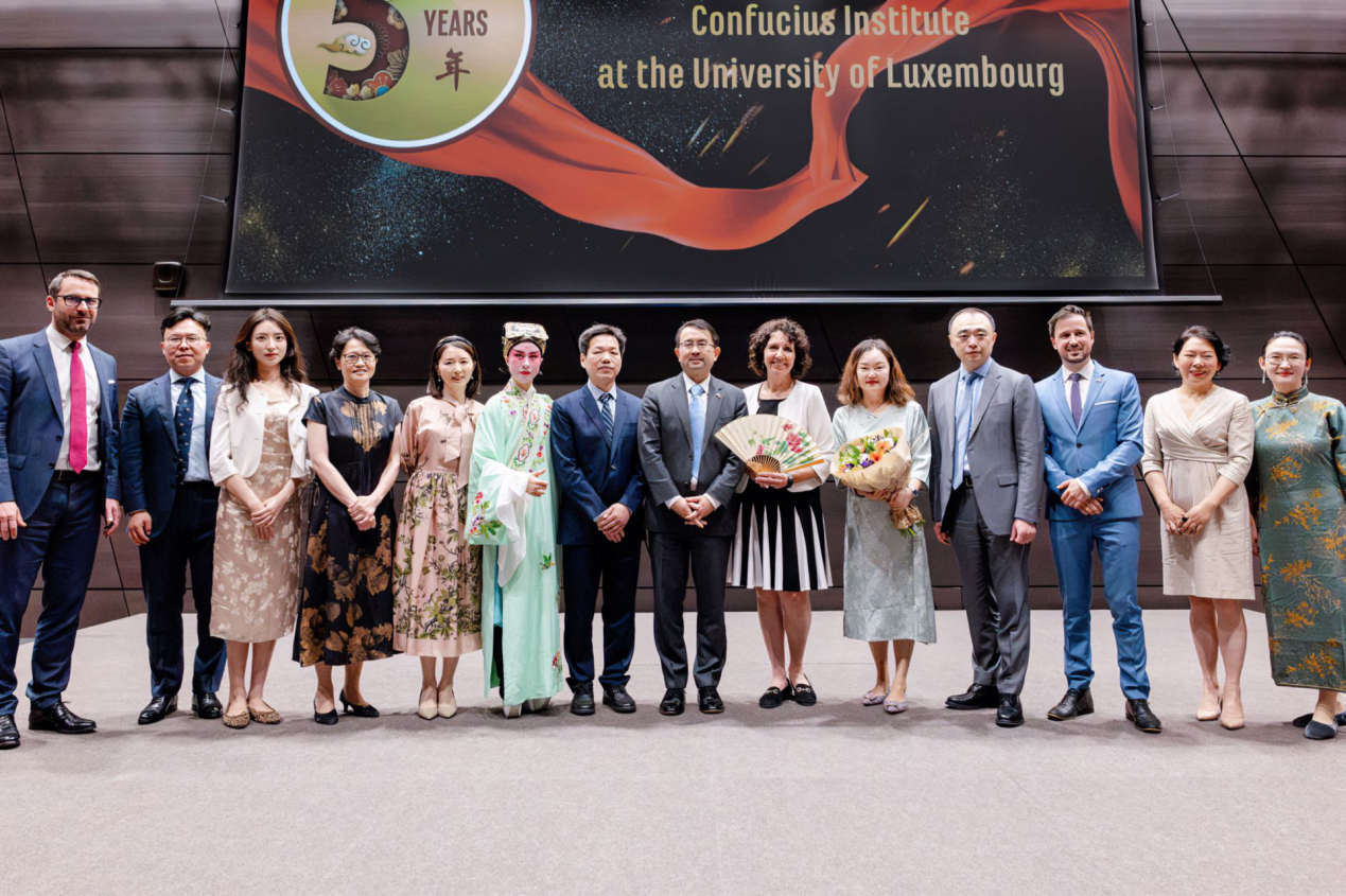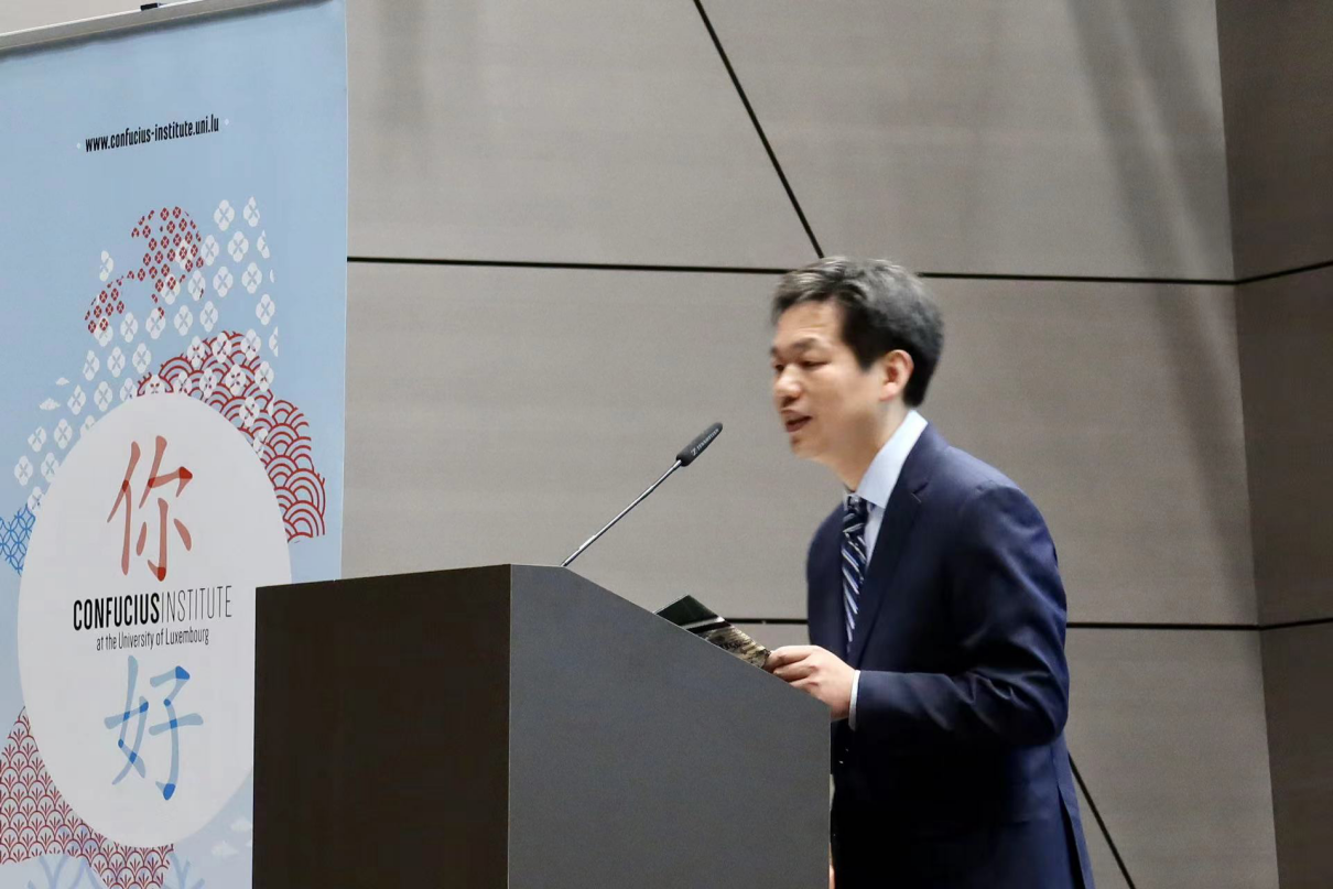 中国驻卢森堡大使华宁、卢森堡大学副校长Marie-Hélène Jobin教授、中国银行欧洲有限公司副行长郭志垚、卢森堡金融推广署署长Nicolas Mackel、中卢商会主席谢竹君、中卢商会副主席Jacques Bortuzzo等出席盛典,复旦大学副校长陈志敏教授发来视频祝词。庆典由孔子学院中方院长吴昊、卢方院长白泽义主持。