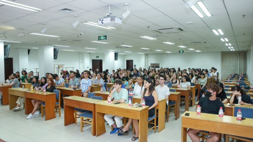 迎新会邀请中外“老生”从自身角度分享他们在北京大学的生活与学习经验。他们结合自身经历,向交换生们介绍了北大的校园文化、实用妙招、学术氛围以及应对学业压力的方法等。通过与学长学姐的互动和交流,学生获得了更多实用的建议和心得,为在北大的学习生活做好准备。