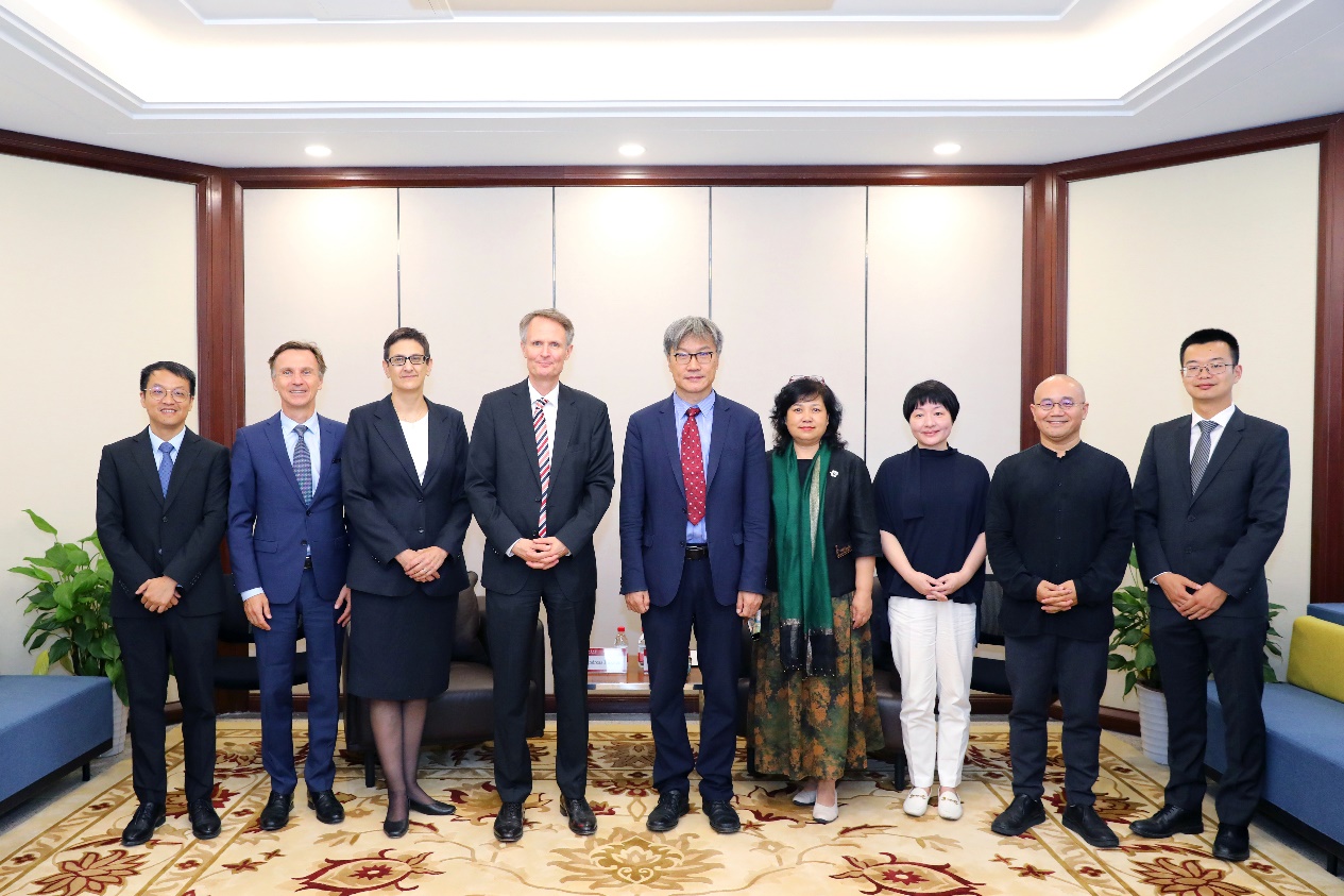 2023年9月25日下午,奥地利驻华大使利肯博士(Dr. Andreas Riecken)一行访问北京大学并发表演讲。北京大学副校长、教务长王博在外文楼会见利肯一行。