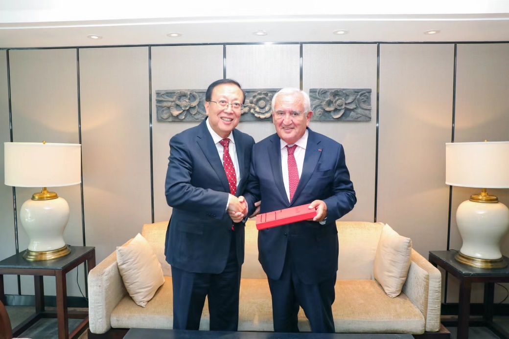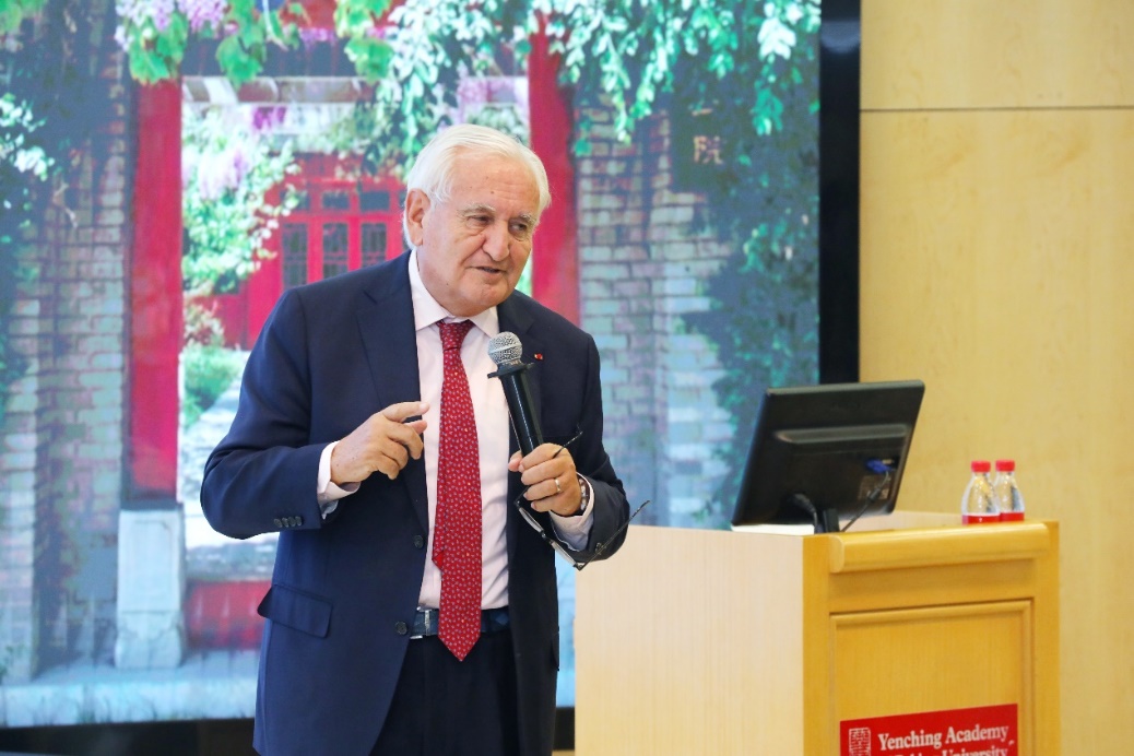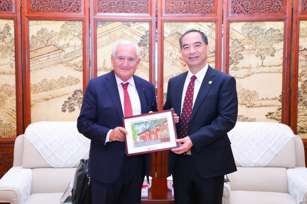 2023年10月19日,法国总统特别代表、原总理让-皮埃尔·拉法兰(Jean-Pierre Raffarin)访问北京大学。北京大学党委书记、校务委员会主任郝平,校长龚旗煌分别会见来宾,党委副书记、副校长宁琦参加活动。