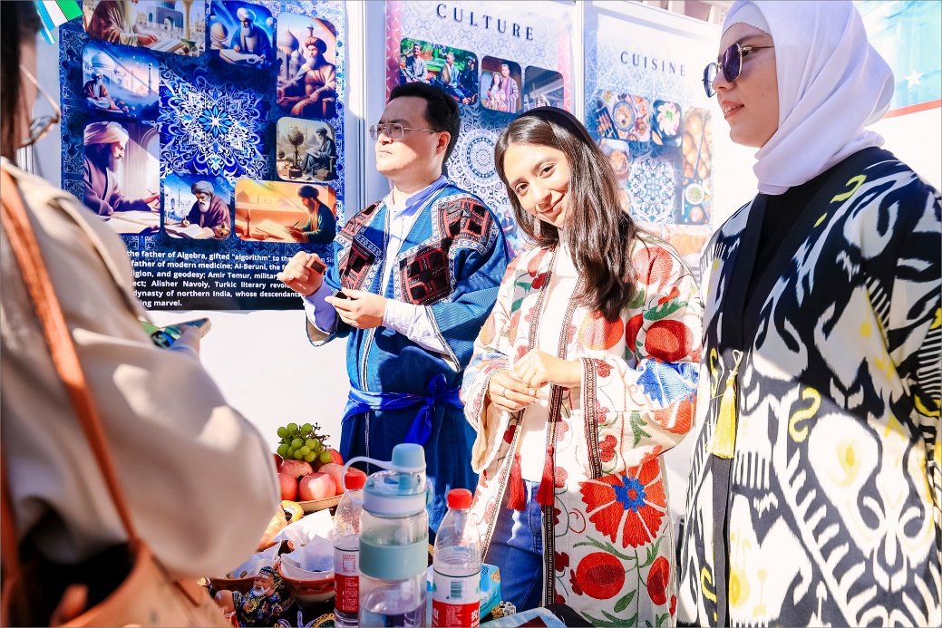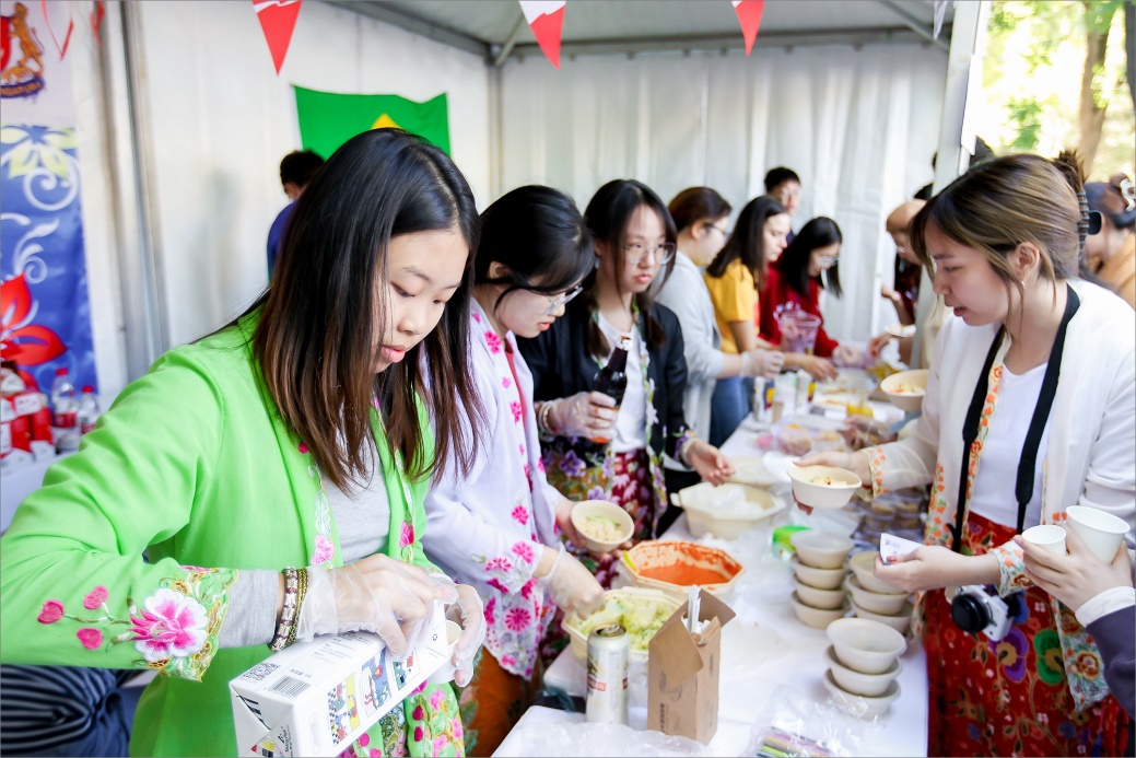 同期,“在北大,与世界面对面”国际游园会开启。覆盖五大洲47个国家和地区的50多个展台,色彩缤纷、琳琅满目,吸引校内外师生前来体验。留学生们热情地介绍自己国家的民俗趣闻与文化特色,现场气氛热烈欢腾。师生们还兴致勃勃地收集各个展台的印章,感受不同国度的风土人情。