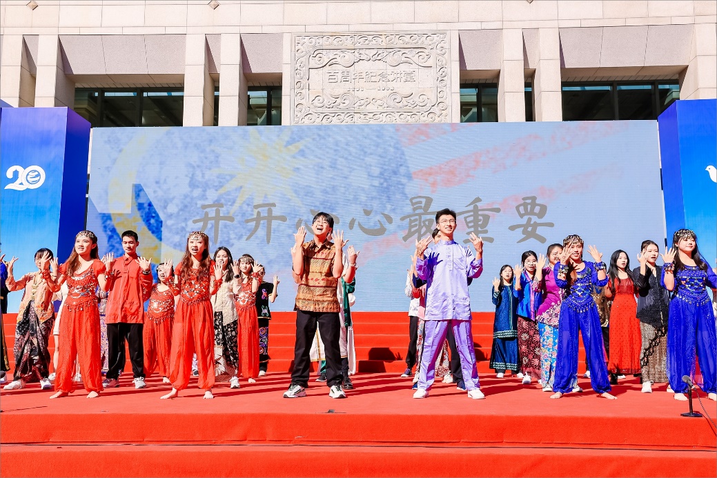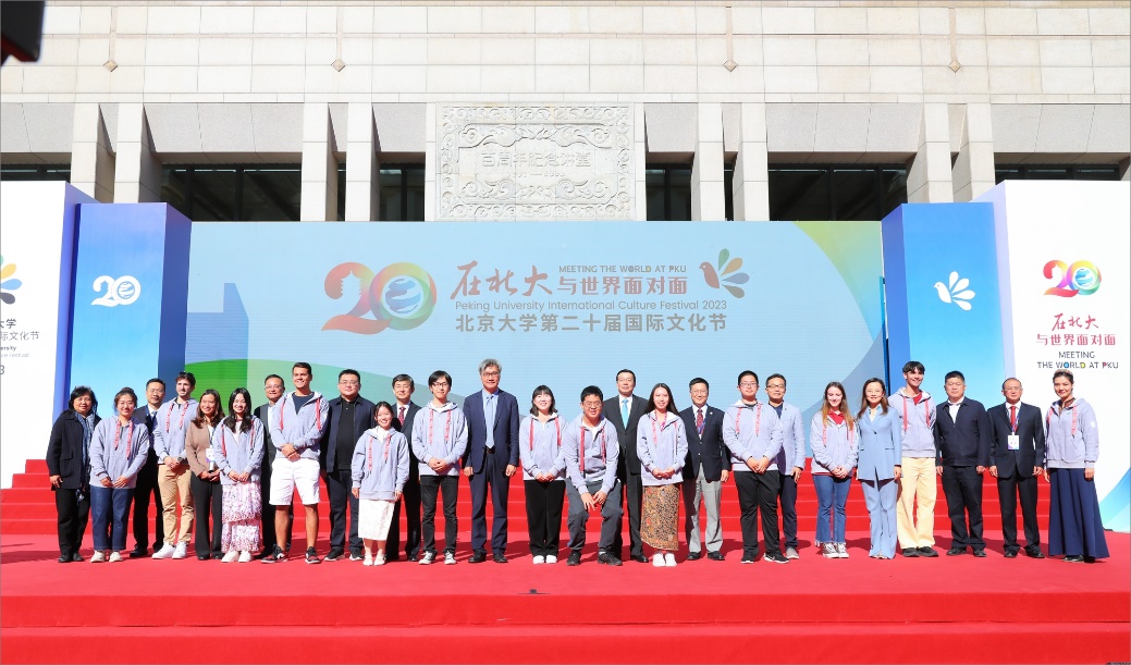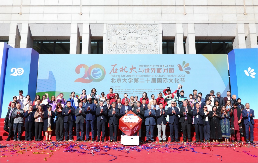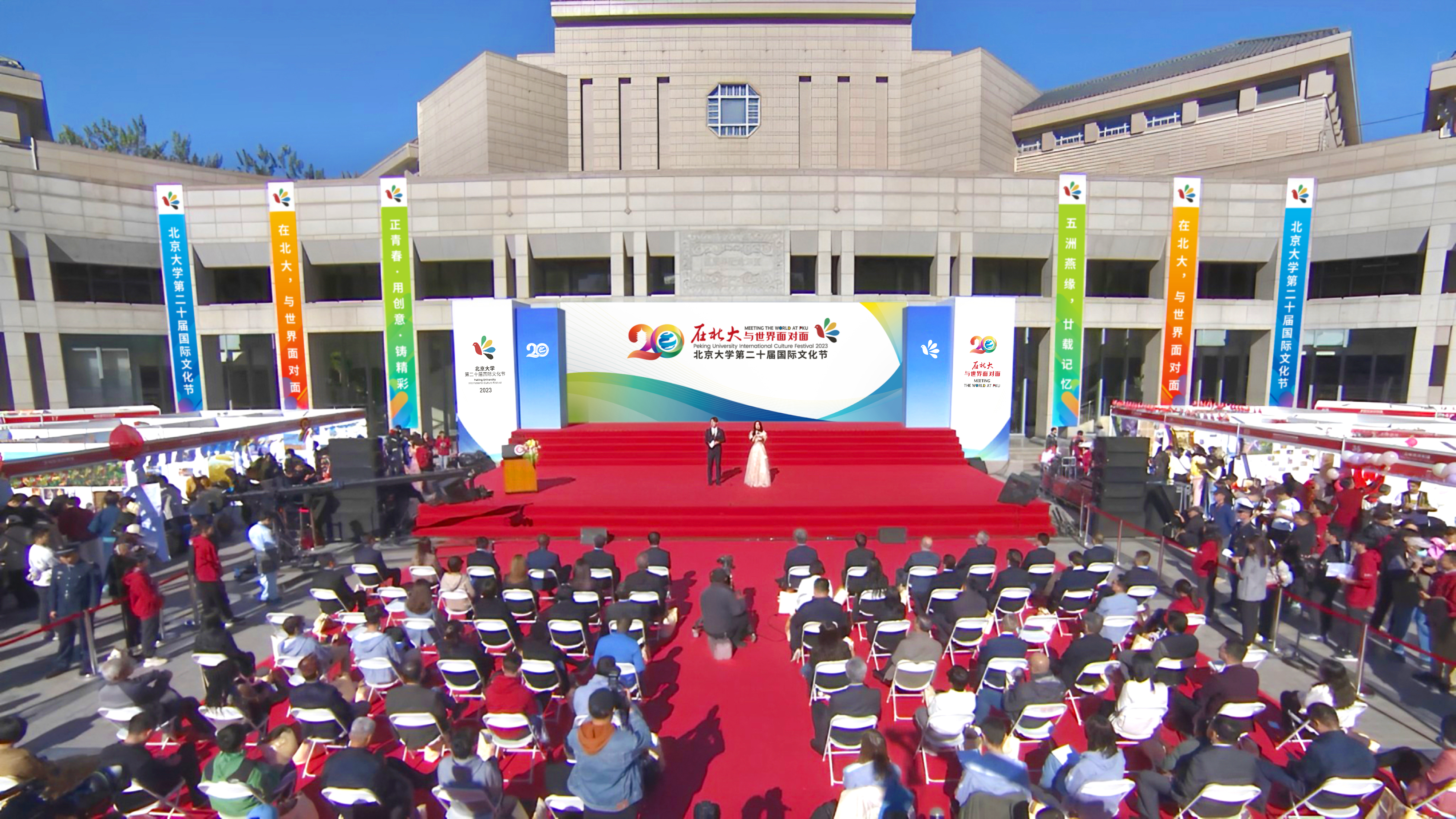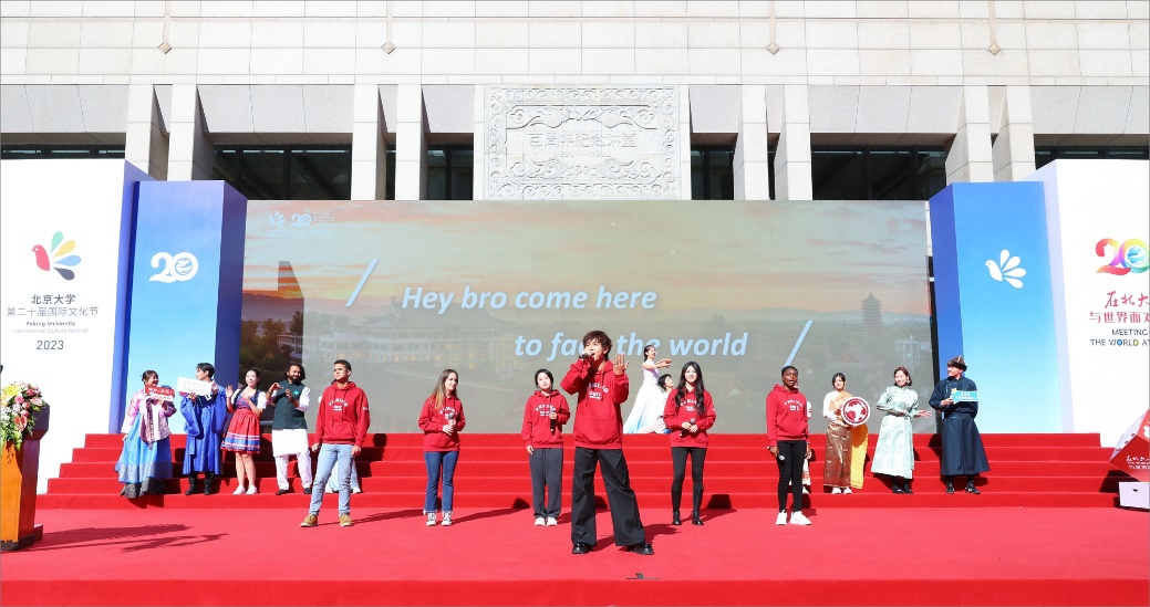 2023年10月21日上午,北京大学第二十届国际文化节在百周年纪念讲堂广场开幕。本届文化节以“在北大,与世界面对面”为主题,共有100多个国家和地区的中外学生参与其中。