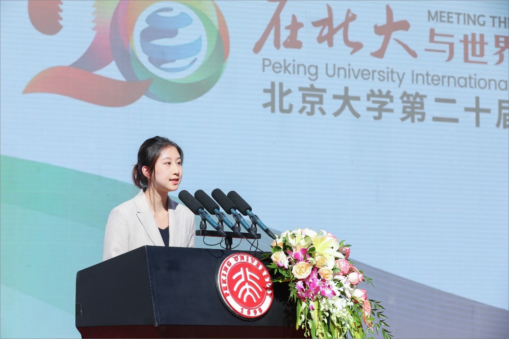 元培学院2020级本科生贺筱汀分享了自己一年前的海外学习项目经历,其间她感受到不同文化背景的人们都渴望构建人类命运共同体。这种渴望存在于一年后的今天,存在于北大的每一个角落里。她还分享了自己“沉浸式”体验国际文化节系列活动的感受,正如她所言,“在这个小小的广场上,我们正遇见广阔的世界”。