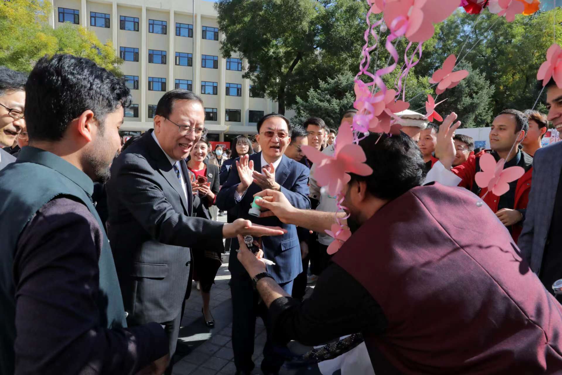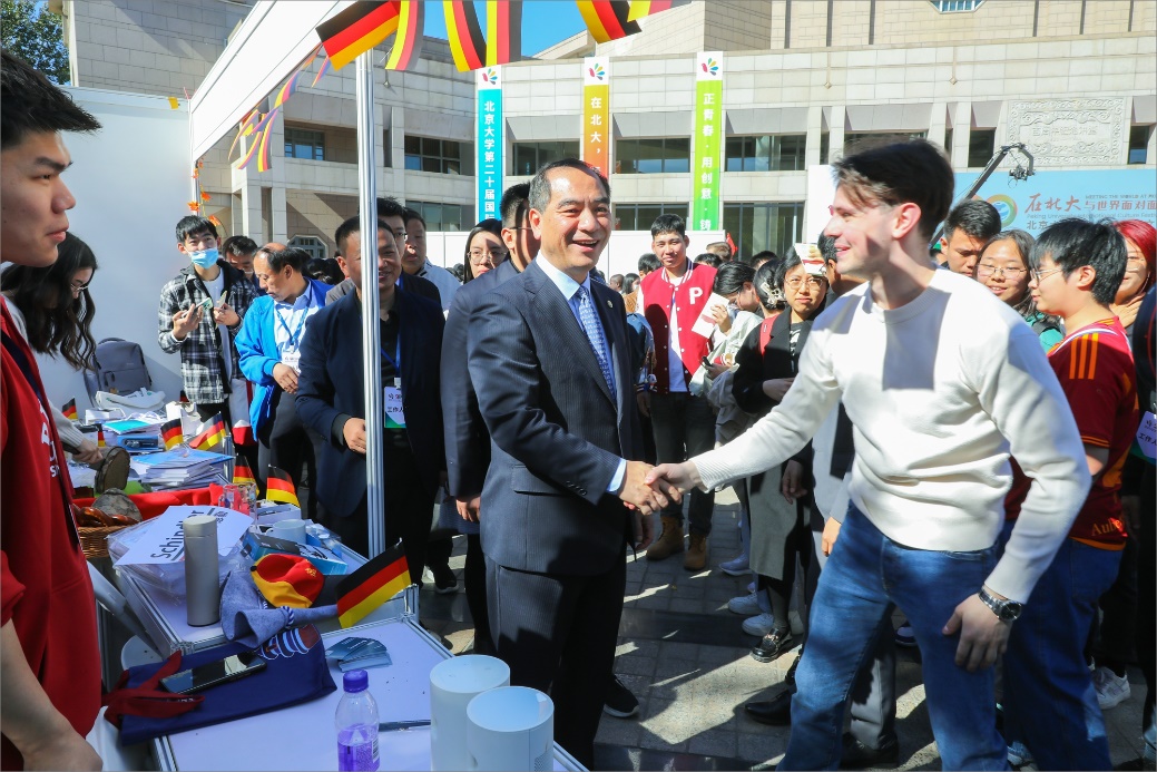 国际文化节期间,校党委书记郝平、校长龚旗煌来到现场,参加主题游园会活动,饶有兴致地观看留学生才艺表演,与各展台的留学生、参加活动的北大师生亲切交流。