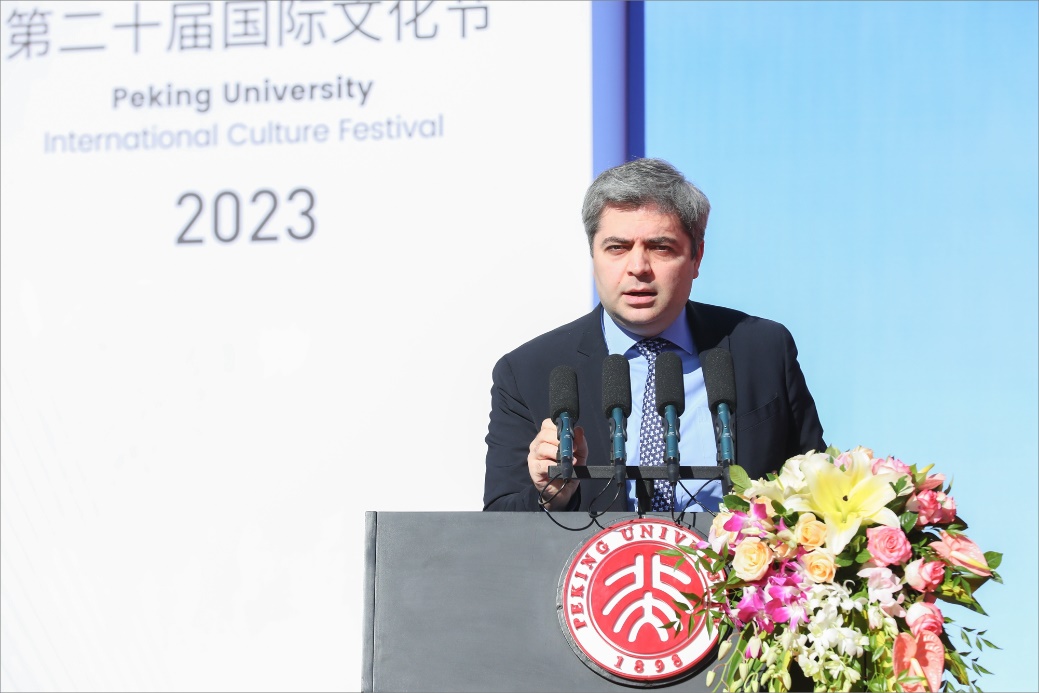 格鲁吉亚驻华大使阿尔赤·卡岚第亚表示,国际文化节助力不同国家青年跨文化交流和相互理解,让他们探索不同文化背景下的核心价值观。他认为,高等教育领域合作是促进国际交流合作的重要方向。他鼓励两国师生参加多种国际交流项目,促进彼此交流、相互理解,并希望北京大学在加强两国教育合作中发挥更加积极的作用。
