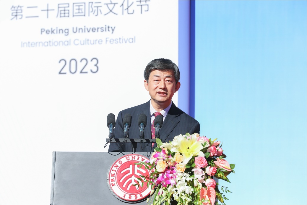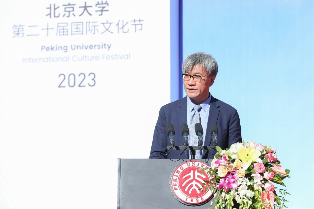 王博在致辞中表示,北京大学国际文化节的创立与发展,既根植于中华文明“和而不同”的文化土壤,秉承着北大“思想自由、兼容并包”的文化传统,也得益于学校开放合作的国际化发展战略。结合“人类命运共同体”的价值内涵以及国际文化节的历史定位,本届国际文化节鼓励和促进中外师生了解、交流与沟通,为促进世界不同文化的交融、构建人类命运共同体贡献积极力量。