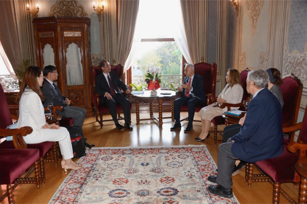 在伊斯坦布尔大学,龚旗煌一行会见了校长奥斯曼·比伦特·祖尔费卡尔(Osman Bülent Zülfikar),汉语言系主任、土耳其著名汉学家阿尤布·撒勒塔史(Eyüp Sarıtaş)。龚旗煌表示,北京大学与伊斯坦布尔大学作为两国最具代表性的大学,希望未来能加深两校在语言、文化、医学、区域国别研究等方面合作。祖尔费卡尔表示,伊斯坦布尔大学一直以来都注重国际学术交流与合作,期待与北京大学探讨学生交换,并开展医学领域合作等方面交流。