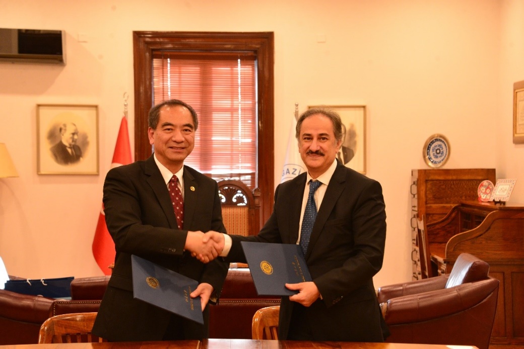在结束南非学术会议行程后,龚旗煌一行访问了土耳其。在海峡大学,龚旗煌一行会见了校长穆罕默德·纳西·因奇(Mehmet Naci Inci)、副校长古尔坎·库姆巴罗格鲁(Gürkan Kumbaroğlu)。龚旗煌表示,北京大学高度重视与土耳其海峡大学的合作与交流,库姆巴罗格鲁今年9月份刚刚访问北大,双方在许多领域已建立深厚的合作基础,期待未来进一步拓展交流。因奇介绍了海峡大学的发展情况,希望未来能够推进两校更宽领域的合作。会见最后,龚旗煌与因奇共同签署两校合作协议,为双方合作开启新篇章。