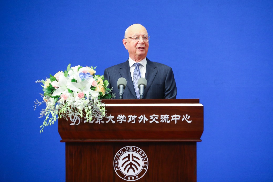 施瓦布对北京大学给予的荣誉表示感谢,并在主题演讲中提道,中国的经济和教育发展对世界有着重要意义,北京大学处于中国科研和创新的前沿,在应对全球性挑战方面发挥着重要作用。当今世界,突破性的技术创新,如人工智能、量子计算等,正在以深刻的方式重塑世界。中国在应对气候变化、发展可再生能源等应对全球性挑战方面作出的成绩让世界瞩目。作为未来的火炬手,北大的青年学子必将为创造更加美好的未来作出积极贡献。演讲后,施瓦布与北大师生就世界经济论坛的宗旨、环境问题等相关领域话题开展了交流。