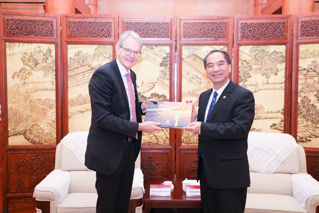 2023年11月22日上午,德国霍尔茨布林克出版集团首席执行官、施普林格·自然集团监事会主席斯特凡·冯·霍尔茨布林克(Stefan von Holtzbrinck),施普林格·自然集团大中华区总裁暨全球图书业务总裁汤恩平(Niels Peter Thomas)一行访问北京大学。北京大学校长龚旗煌在临湖轩会见来宾。