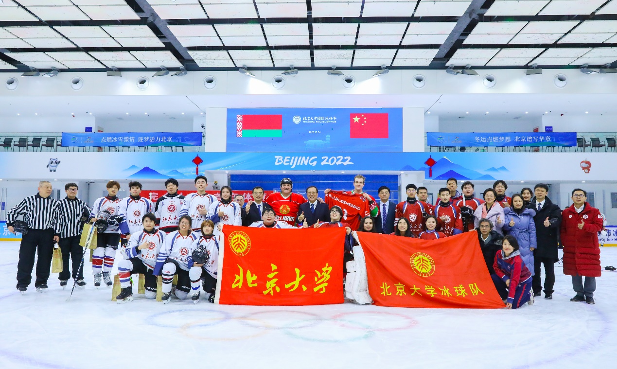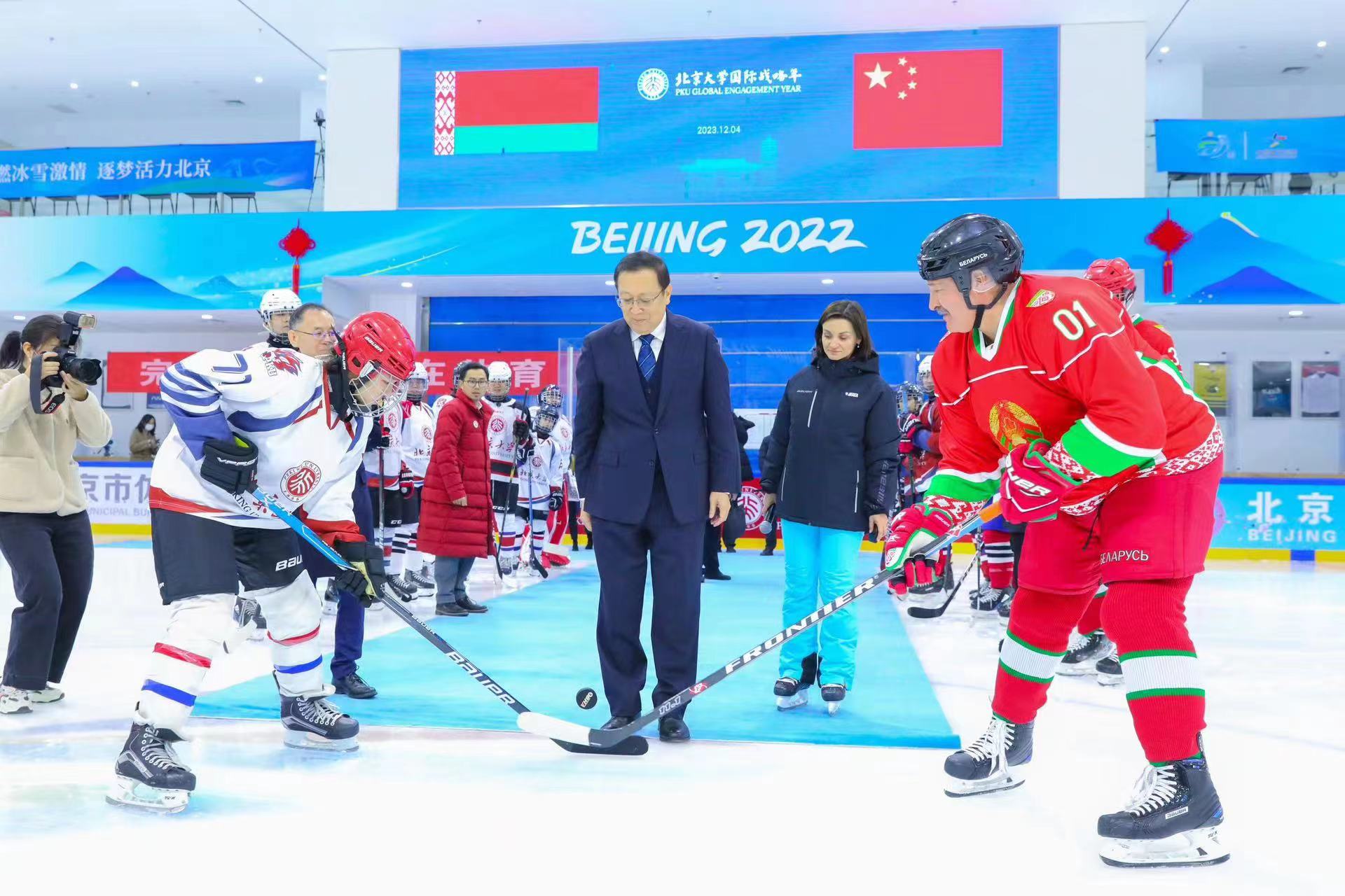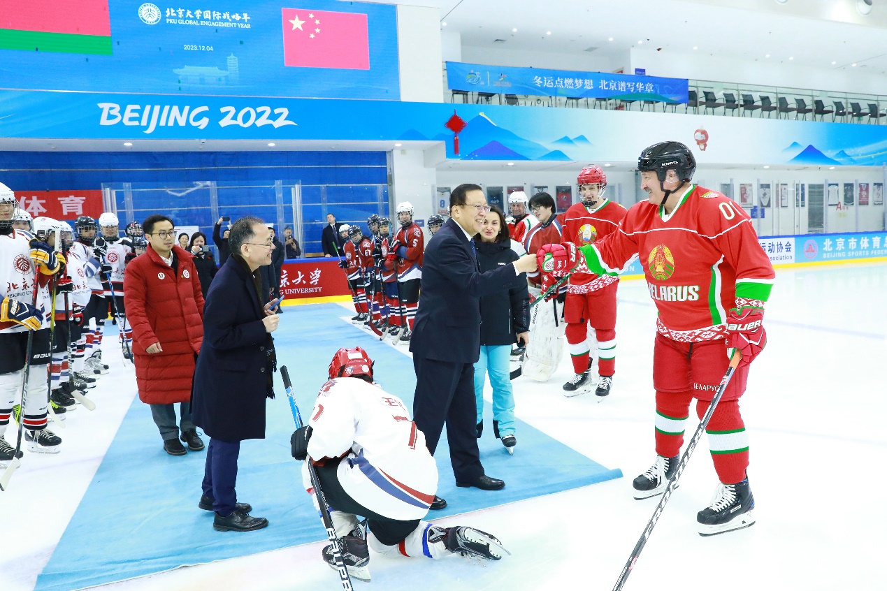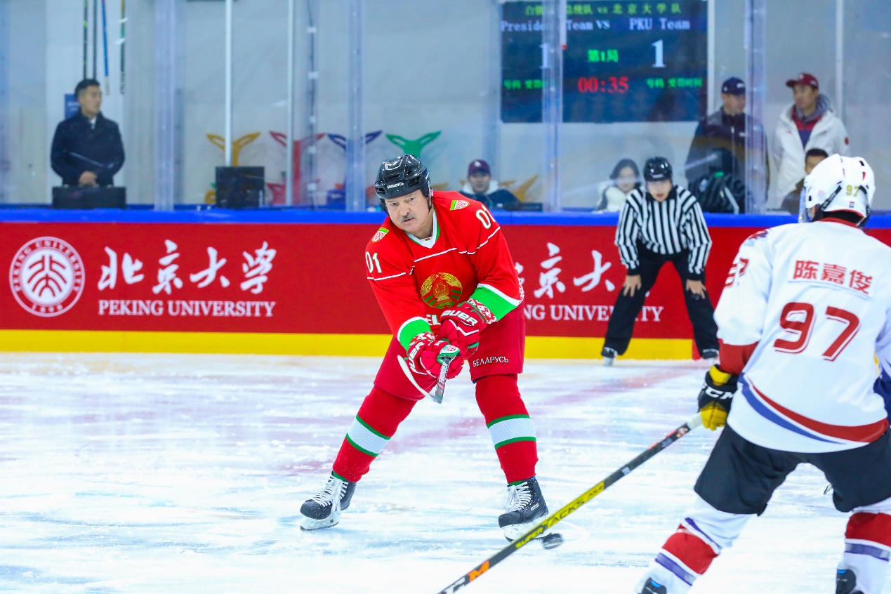 会见结束后,卢卡申科总统一行前往国家体育馆,参加北京大学冰球队的训练,并交流分享了冰球运动经验。随后,卢卡申科总统与北大冰球队进行了一场精彩的友谊赛,郝平为友谊赛开球,这场比赛让北大师生亲身感受到冰雪运动的魅力。