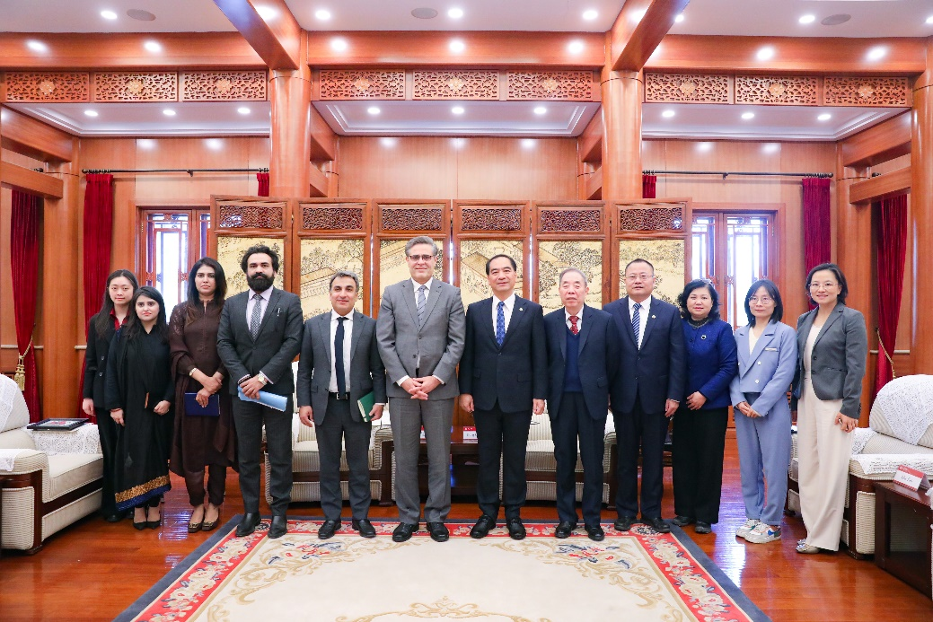 北京大学外国语学院党委书记李淑静、国际合作部部长李昀、巴基斯坦研究中心主任唐孟生、外国语学院南亚学系乌尔都语教研室主任张亚冰等陪同会见。
