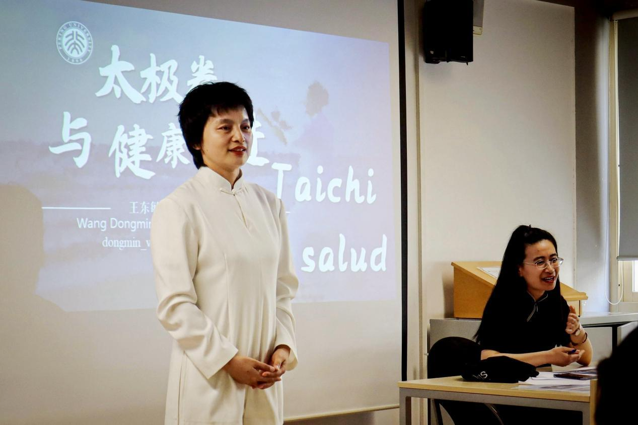 4月25日,巡讲首日,北京大学“太极拳与健康促进”讲座走进塞维利亚大学,吸引众多师生及社会人士参加。围绕“上太空入深海的太极拳”“走向世界的太极拳““走向科学的太极拳”这三大内容,主讲人王东敏以上太空的“巡天太极”和甲板上的“水兵太极”为切入点,从百川汇流、源远流长的太极文脉到传承互鉴、百花齐放的众多流派,从太极拳在全球150个国家和地区的流行到其对于心脑血管等各类疾病的防治康复效果,向参与者阐释了太极拳的文化意义与养生功效。