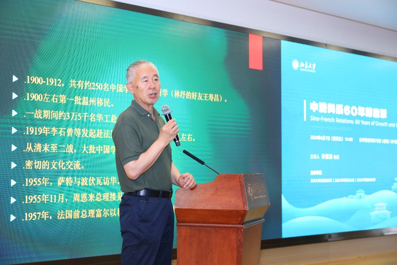 许振洲教授从13世纪中期法国宗教和外交人员访问中国开始,梳理了两国悠久的交往历史,重点从文化交流、建交历程、经济合作及国际关系等方面系统回顾了过去60年中法关系的发展历程。讲座深入分析了法国对中国文化的认知程度,中法关系经历的从正常到密切的两个阶段。经过不断发展,两国关系更加紧密,中国和法国在经济、科技领域合作尤为密切,即使在疫情下仍保持贸易增长。面向未来,我们可以用对方能够听懂和理解的方式介绍我们自己,“讲好中国故事”;同时,应该大力发展人民外交,积极通过民间交流交往推动两国关系不断发展。