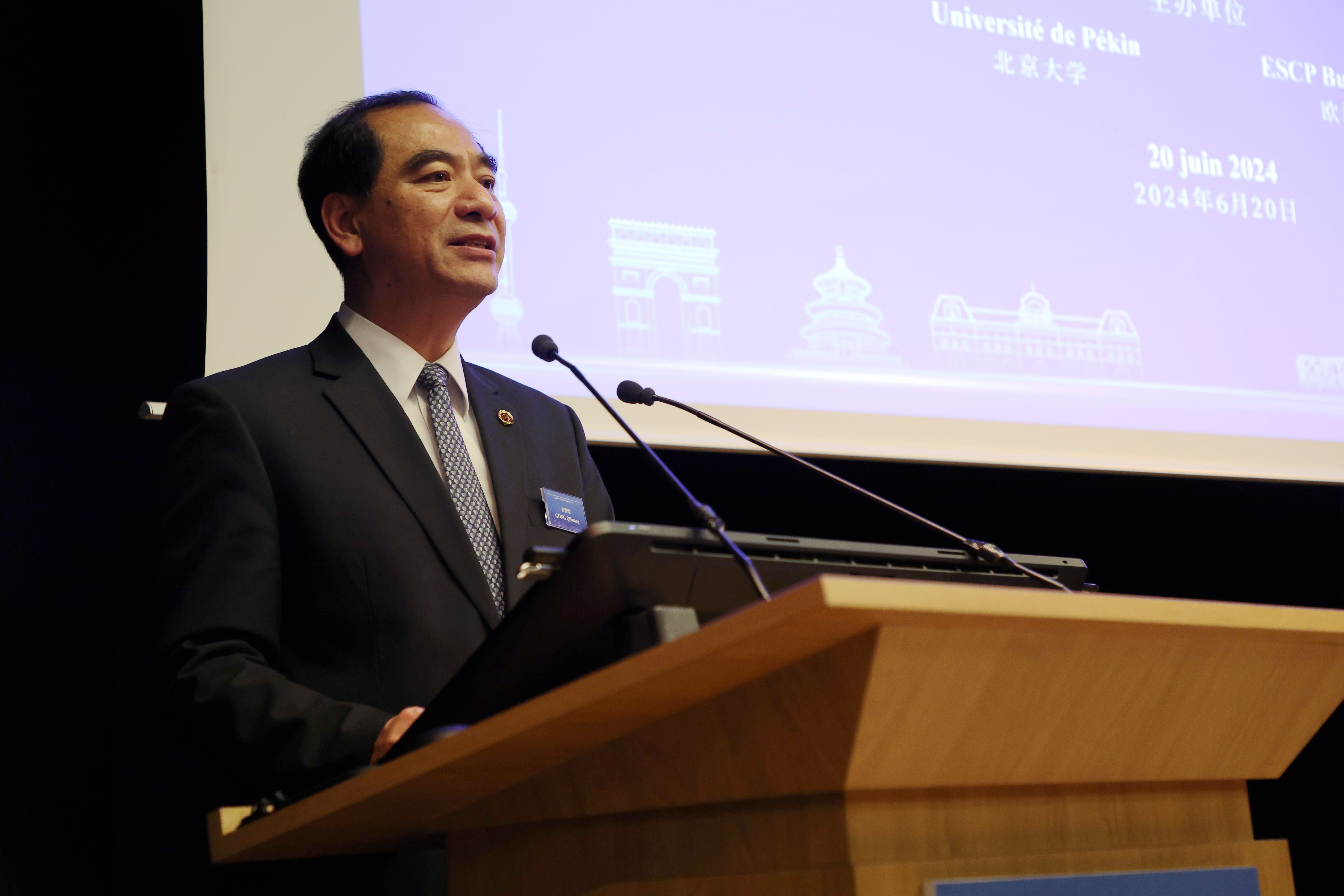 刘国坚在致辞中表示,欧洲商学院非常荣幸能够与北京大学共同主办此次会议,并期待通过此次论坛,进一步推动法中两国在教育和科研领域的深度合作,特别是在基础科学和创新人才培养方面的合作。