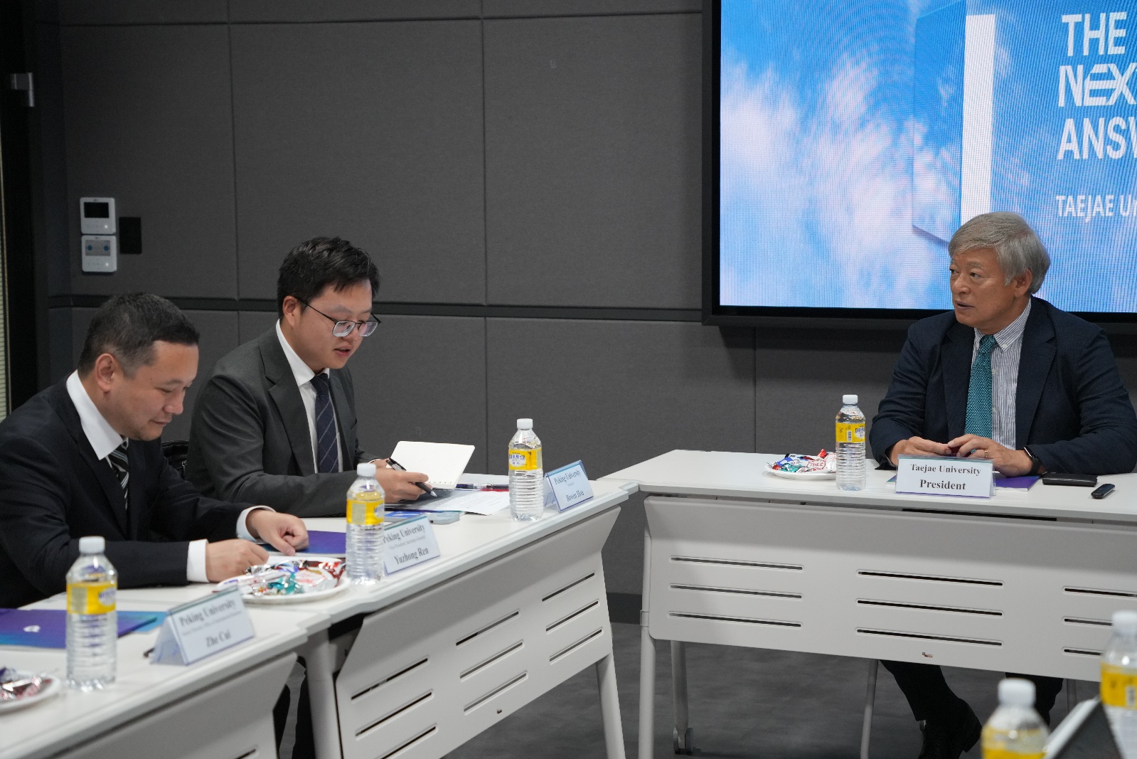 7月15日下午,代表团拜会高丽大学原校长、泰斋大学校长廉载镐。任羽中对廉载镐长期给予北京大学以及北京论坛的大力支持表示感谢,并希望他能够继续关注北京论坛发展,积极参与论坛工作。廉载镐表示会一如既往地支持北京论坛发展,并介绍了其新任职的泰斋大学情况,希望双方可在数智教育领域加强合作。