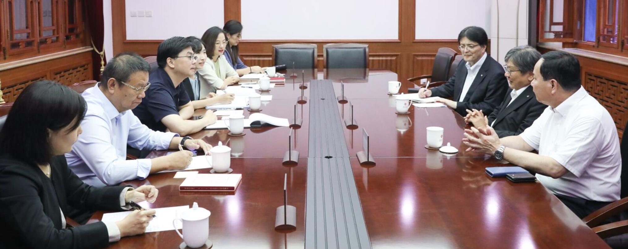 9月10日下午,日本早稻田大学常务副校长渡边义浩、副校长弦间正彦一行访问北京大学。北京大学党委常委、副校长方方在临湖轩会见来宾。