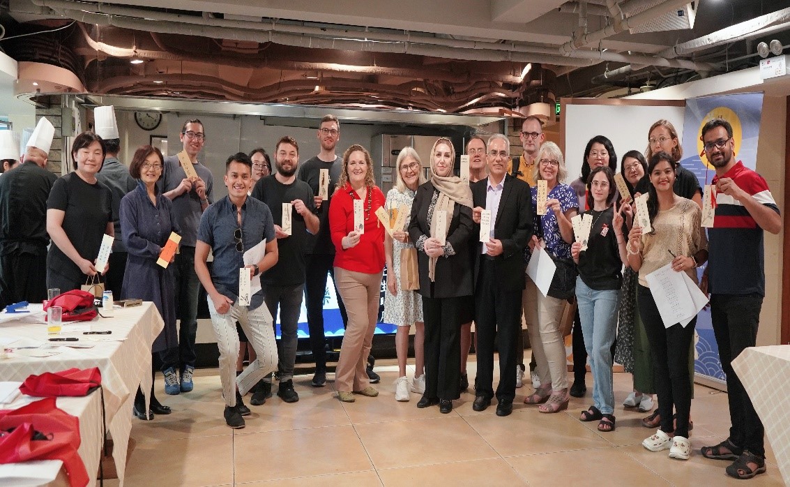 在专业厨师的指导下,外籍专家亲手制作了月饼。大家还学习并朗诵了宋代诗人苏轼描绘中秋月夜的经典之作《水调歌头·明月几时有》,聆听了由诗词改编的歌曲,深入感受中国诗词和音乐的独特韵味。大家还用汉字在古朴的书签上写下了“花好月圆”、“天涯共此时”、“但愿人长久,千里共婵娟”等充满诗意的祝福语。
