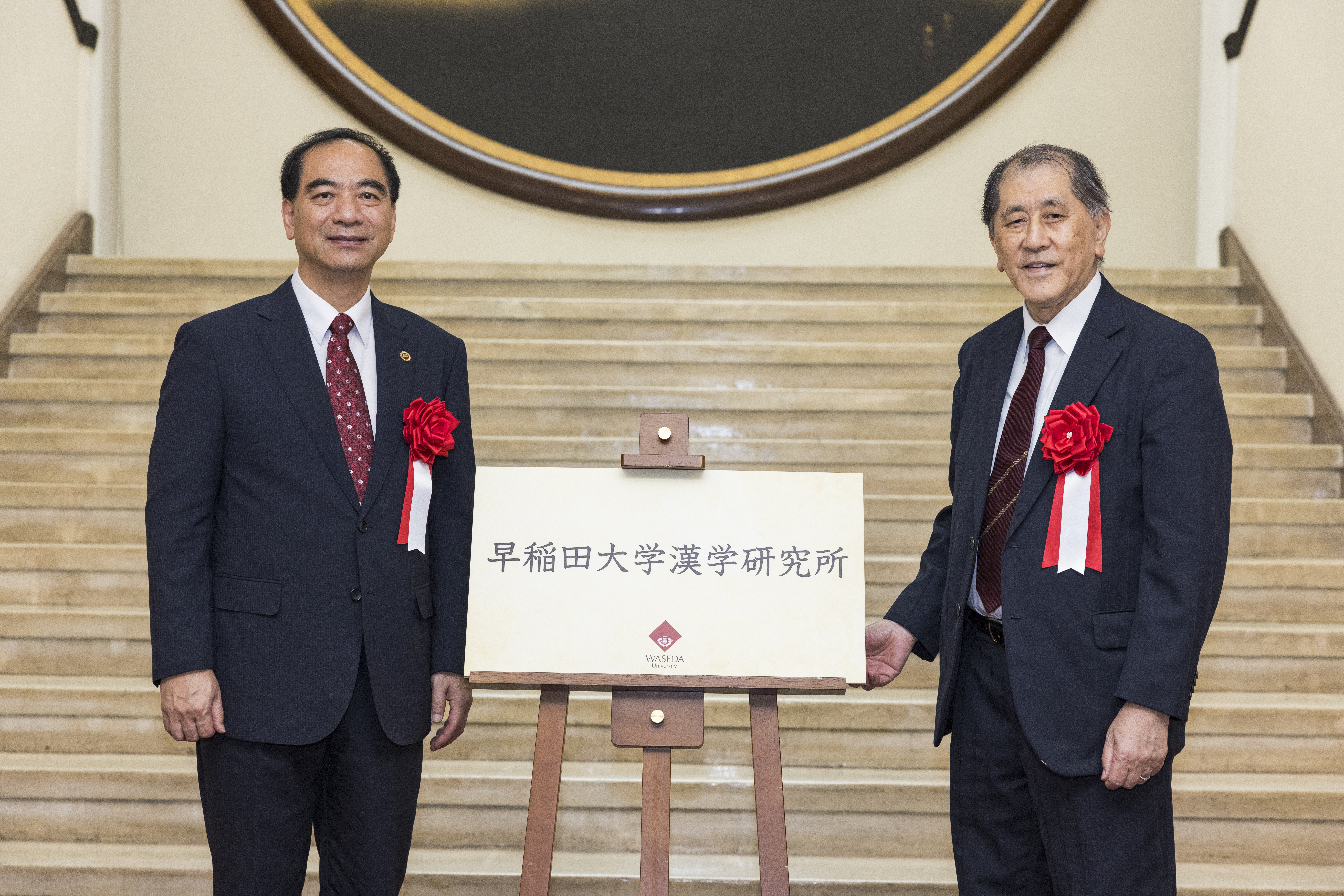 下午,代表团一行出席早稻田大学汉学研究所揭幕仪式,龚旗煌与田中爱治共同为研究所成立揭幕,双方代表各自学校签署了《北京大学-早稻田大学关于汉学研究所的合作意向书》。日本亚洲共同体文化合作机构会长、日本原首相福田康夫,中国驻日本大使馆吴江浩分别就汉学研究所成立发来贺信。日中友好会馆会长、日本原驻华大使宫本雄二,中国驻日本大使馆教育参赞郭军,康师傅控股有限公司董事长魏宏名出席仪式。随后,代表团参观了“早稻田大学与北京大学1882—1921特别展”。