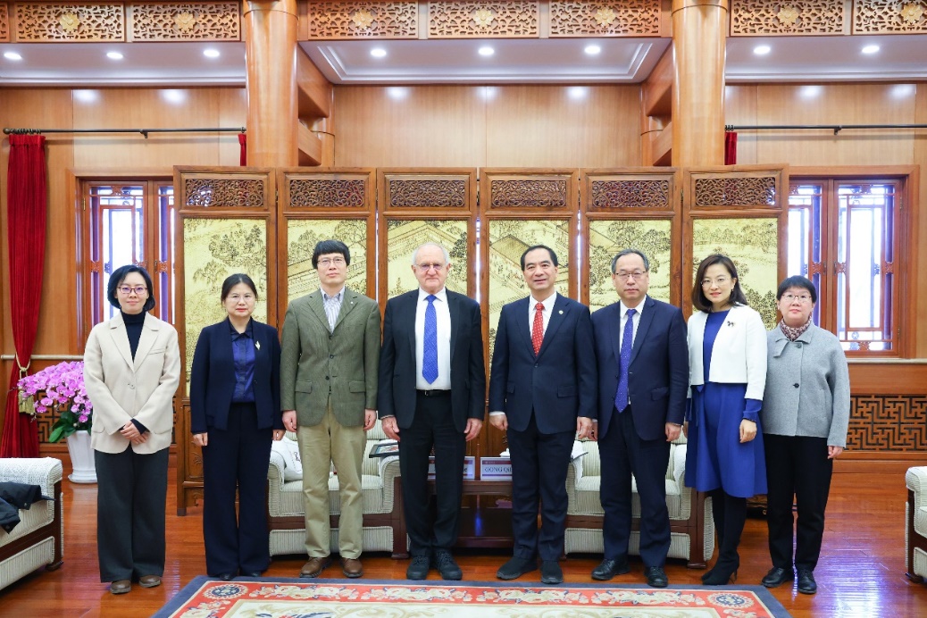 2月19日上午,墨西哥科学院院长何塞·施雅德(José A. Seade)访问北京大学。北京大学校长龚旗煌,党委常委、副校长张锦在临湖轩会见来宾。