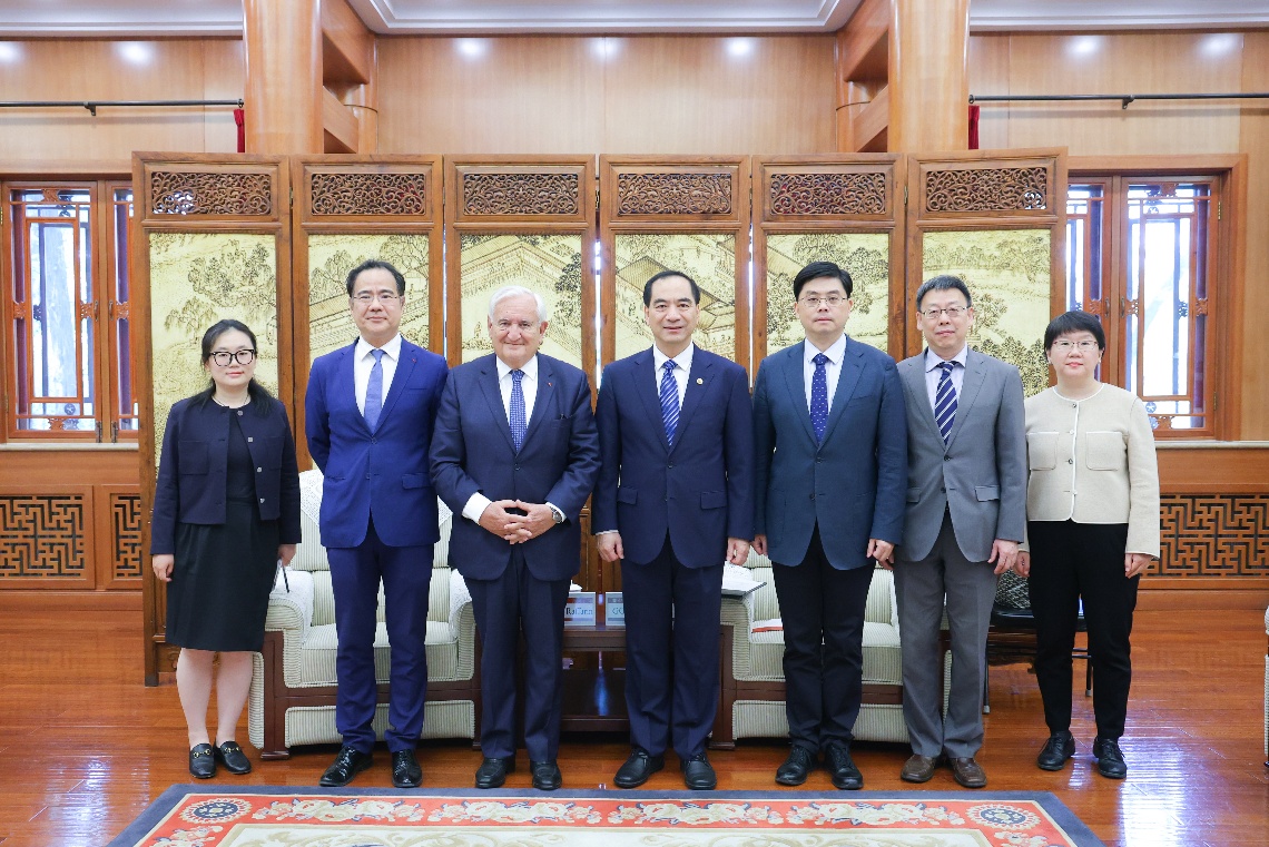 2025年4月26日,法国原总理让-皮埃尔·拉法兰(Jean-Pierre Raffarin)访问北京大学。校长龚旗煌在临湖轩会见来宾,校党委常委、副校长方方陪同会见。