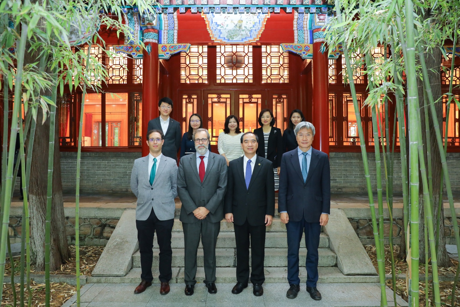 5月22日下午,葡萄牙驻华大使纳西门托(Paulo Jorge Nascimento)一行访问北京大学,北京大学校长龚旗煌在临湖轩会见来宾,副校长、教务长王博陪同会见。