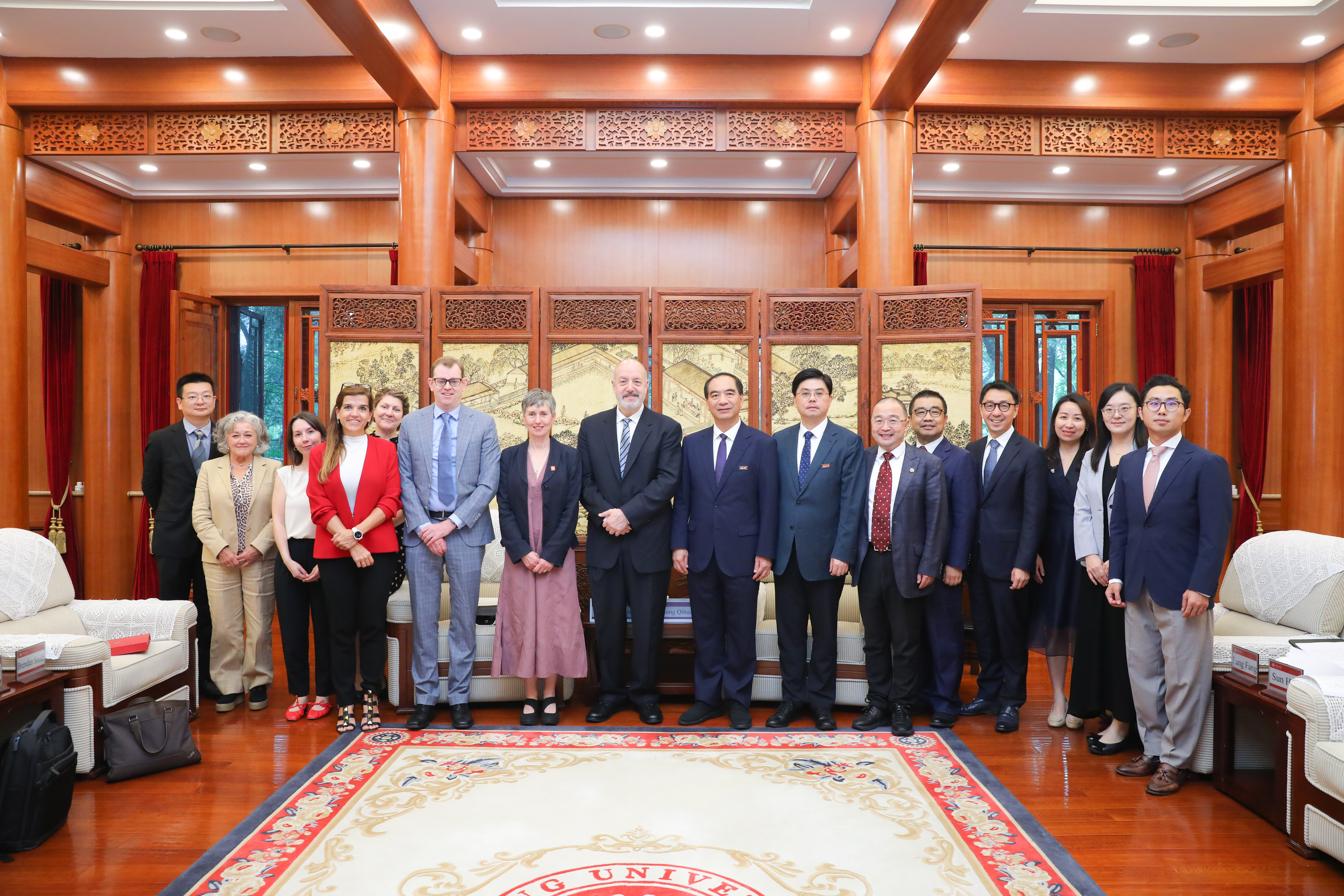 2025年9月5日,伦敦政治经济学院(London School of Economics and Political Science)校长拉里·克莱默(Larry Kramer)率团访问北京大学。北京大学校长龚旗煌在临湖轩会见来宾,副校长方方陪同会见。