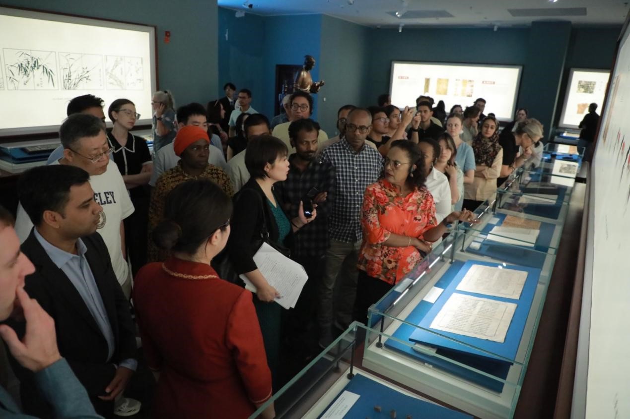 在版本工艺展区,外专们学习了解了中国出版与传播技术的发展历程——从古老的雕版印刷工具、近代新闻印刷版,到标志中国报纸编排史重要转折的《经济日报》。在历史文献展区,明朝万历年间绘制的《坤舆万国全图》、苏轼《西楼苏帖》宋拓本、清代《殿试策》、《论语导读》外语译本、《永乐大典》影印本等珍贵文物,引起了外专们的浓厚兴趣。面对琳琅满目的展品,他们认真聆听讲解,不时驻足交流、提问与思考,深切感受中华民族在文学、哲学、艺术、地理等领域的卓越成就。