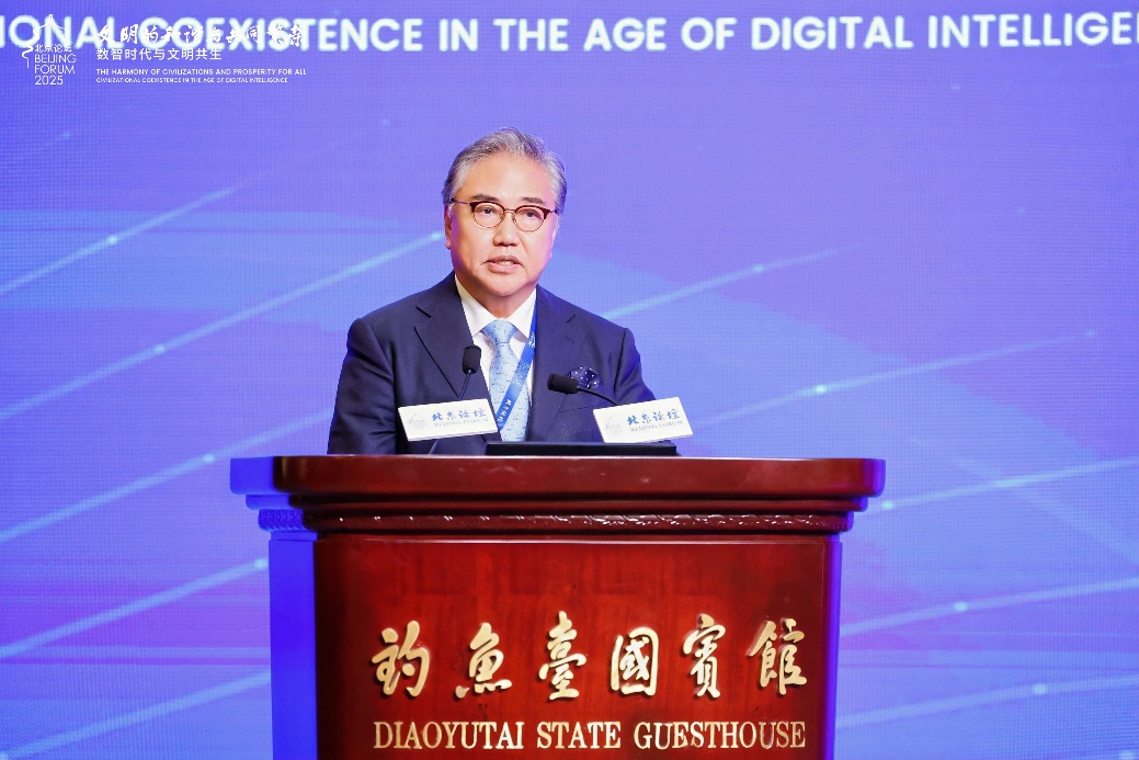 韩国SK集团全球董事长崔泰源在视频致辞中指出,人工智能时代,企业应成为可持续未来的构建者,在技术与人类之间搭建合作平台,共同应对复杂挑战、推动社会变革。解决当今多层次社会问题需要企业、学术界、民间组织及公民共同采取集体行动。北京论坛在过去20多年间的实践,不仅在国家、行业与民众之间构建出信任关系,更提供了解决时代问题的生动范例。希望北京论坛继续发展成为连接技术、人类与社会的全球枢纽。