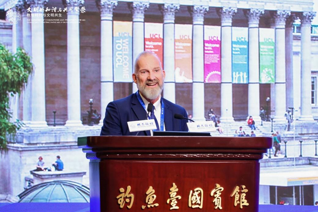 徐青森在致辞中强调文明交流互鉴与教育合作的重要性。他表示,党的二十届四中全会为深化教育改革、推动科技创新、加强人才培养指明了前进方向。中国政府高度重视教育事业发展与高水平教育对外开放,未来将通过推动教育创新激活青春力量、以开放合作凝聚全球共识、以数字文明滋养人文精神。教育部将持续支持高校利用北京论坛等平台拓展合作,共同应对全球性挑战。