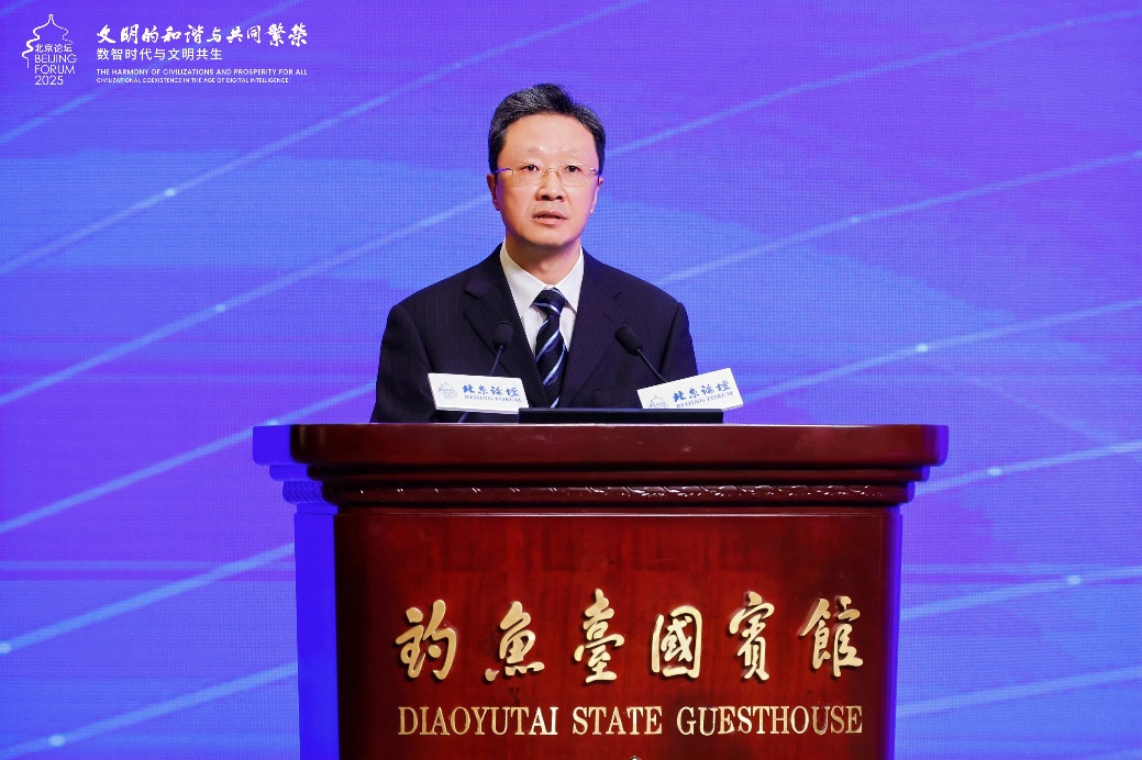 于英杰介绍了北京在建设全球数字经济标杆城市方面取得的新进展。他表示,党的二十届四中全会和习近平总书记对数字中国建设作出重要指示。本届论坛聚焦数字化与智能化浪潮下的人类社会变革与文明互动,研讨如何以数智创新谋发展、以文明交融聚人心,意义深远。未来,北京市将持续推动数字技术与文化深度融合,深化教育领域国际交流合作,继续支持北京论坛汇聚全球智慧,为文明创新演进贡献北京智慧。