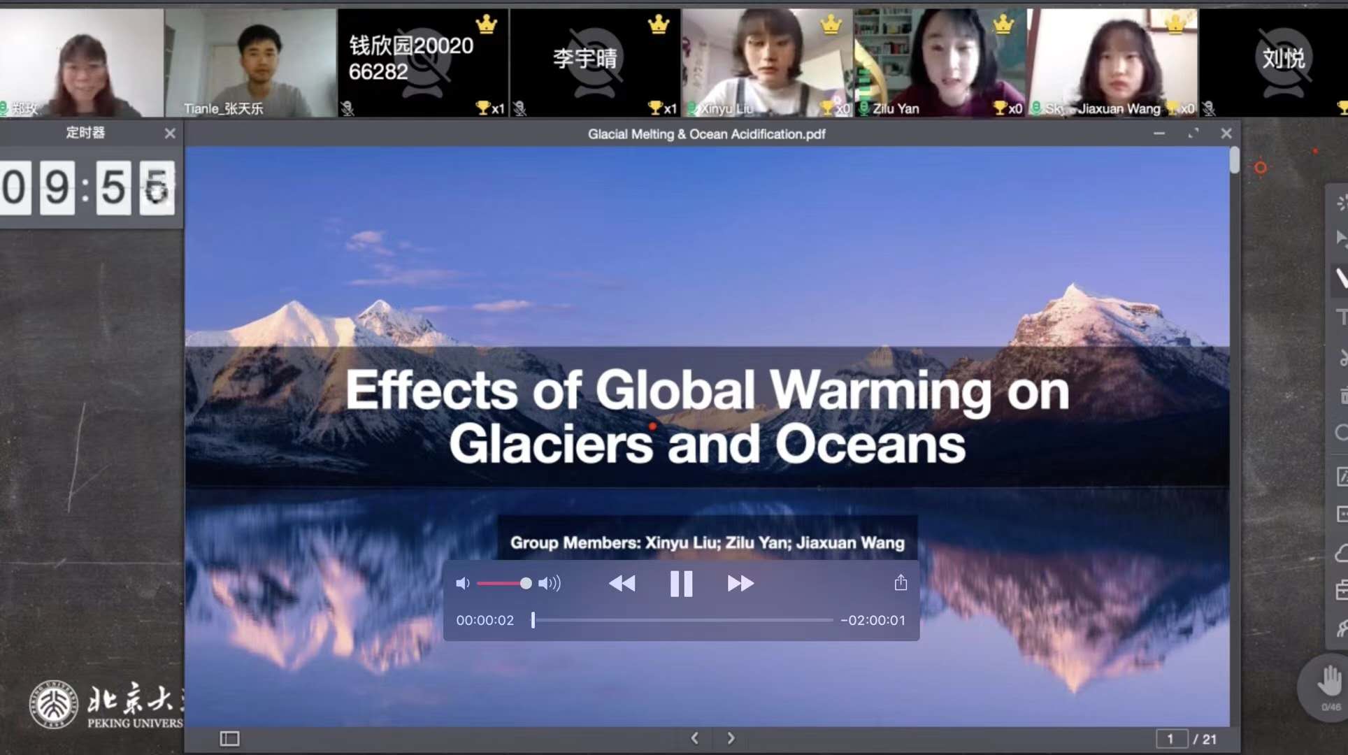 虽然是在云端与多国的学生共话“中国环境”,郑老师还是努力创造互动的机会。不管是每一堂课的发言与专门的讨论环节,还是邀请8位客座教授(其中有5位是杰青、2位同时也是长江学者)来做客座讲座,她希望通过此举创造一种“多元思想碰撞”的良好课堂氛围。