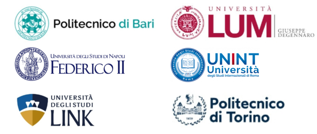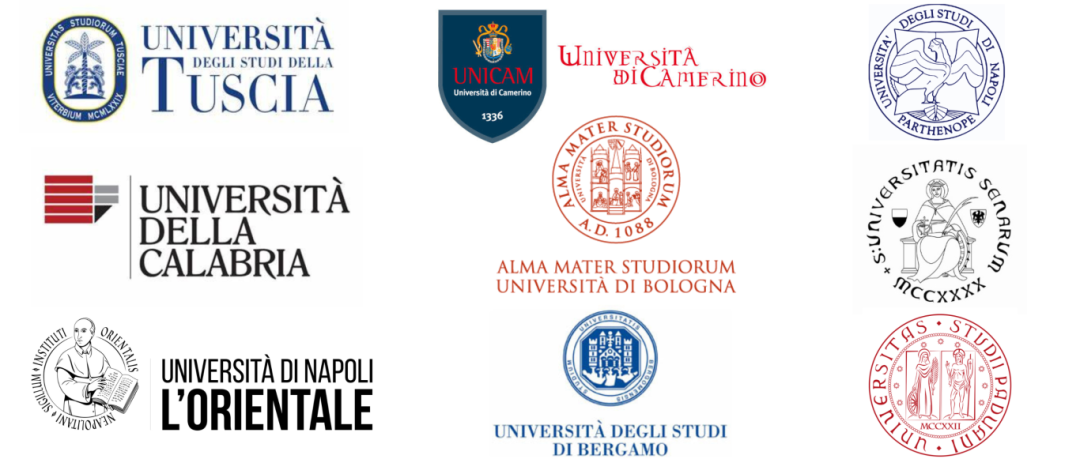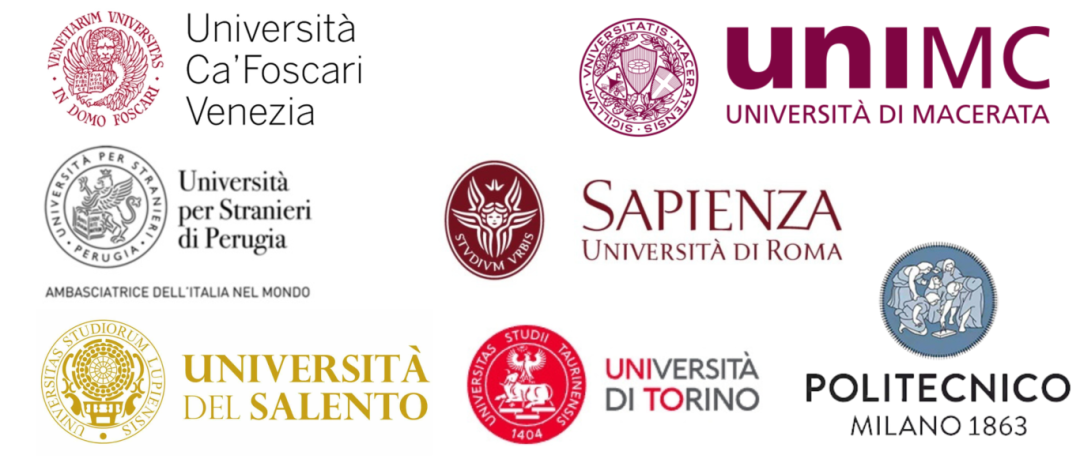 巴里LUM大学、巴里理工大学、贝加莫大学、博洛尼亚大学、都灵大学、都灵理工大学、卡拉布里亚大学、卡梅里诺大学、罗马Link校园大学、罗马国际研究大学、罗马第一大学、马切拉塔大学、米兰理工大学、那不勒斯东方大学、那不勒斯费德里科二世大学、那不勒斯“帕特诺普”大学、佩鲁贾外国人大学、帕多瓦大学、萨伦托大学、图西亚大学、威尼斯大学、锡耶纳大学