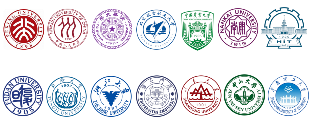 北京大学、中国人民大学、清华大学、北京航空航天大学、中国农业大学、南开大学、哈尔滨工业大学、复旦大学、同济大学、浙江大学、厦门大学、山东大学、中山大学、华南理工大学、西安交通大学、东北大学、湖南大学、北京外国语大学、中国传媒大学、中央音乐学院、中央美术学院、中国政法大学、辽宁大学、上海外国语大学、中国地质大学(北京)、中南财经政法大学、西北大学、中国计量大学