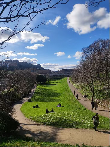 城中的公园草坪也是适合放松的好去处,或许是气候原因,英国的草特别茂盛,适合躺平。徐祐多听过一句特别有意思的话——“英国一旦到了晴天,草坪上面就长满了人。”天气晴朗时,草坪上几乎无一处空闲,人们在草坪上野餐、读书、冥想,或是遛狗、运动、弹奏乐器,动静相宜的和谐景象与爱丁堡悠闲的生活气息,交织成徐祐多最美丽的小城记忆。