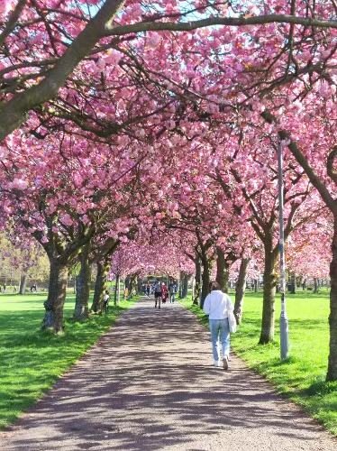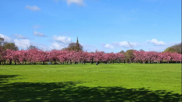 爱大主校区旁边的大片草坪,春天的时候会开满樱花。