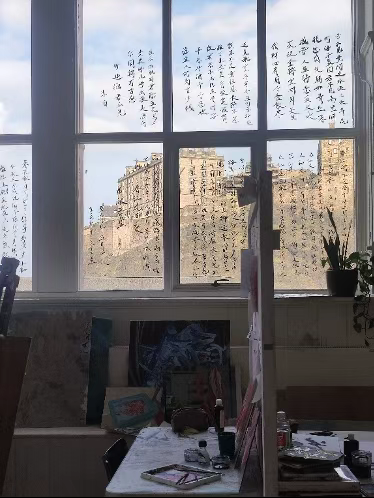 Art studio的窗户上抄着李白的将进酒,窗外是爱丁堡最标志性的城堡。