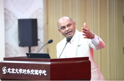 中国科学院院士、青岛海洋科学与技术国家实验室主任、中国海洋大学副校长、北大校友吴立新教授进行了以“透明海洋与人类命运共同体”的演讲。吴立新教授深入探讨了人类面临的三大挑战: “深海大洋如何调制全球变暖”、“海洋多尺度过程能量如何级联”、“深海极端环境下的物质与能量循环”。他指出, “一带一路”政策的实施和推进,需要全球科研机构的协同努力。智慧海洋的建设需要数据的支撑,二十一世纪的海洋科技发展需要多学科协同交叉研究。最后,他鼓励广大学者为国家的海洋建设作出自己的贡献。