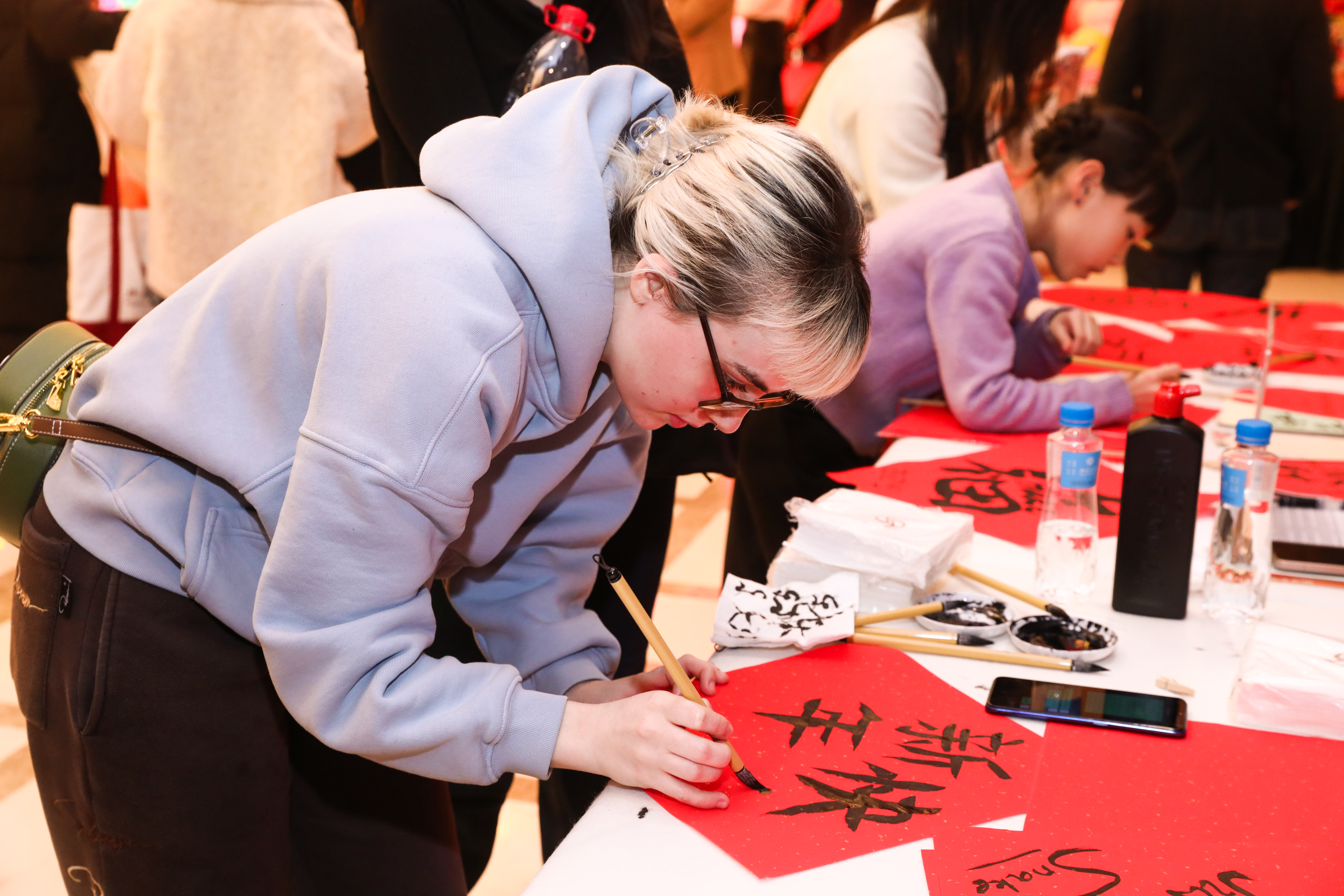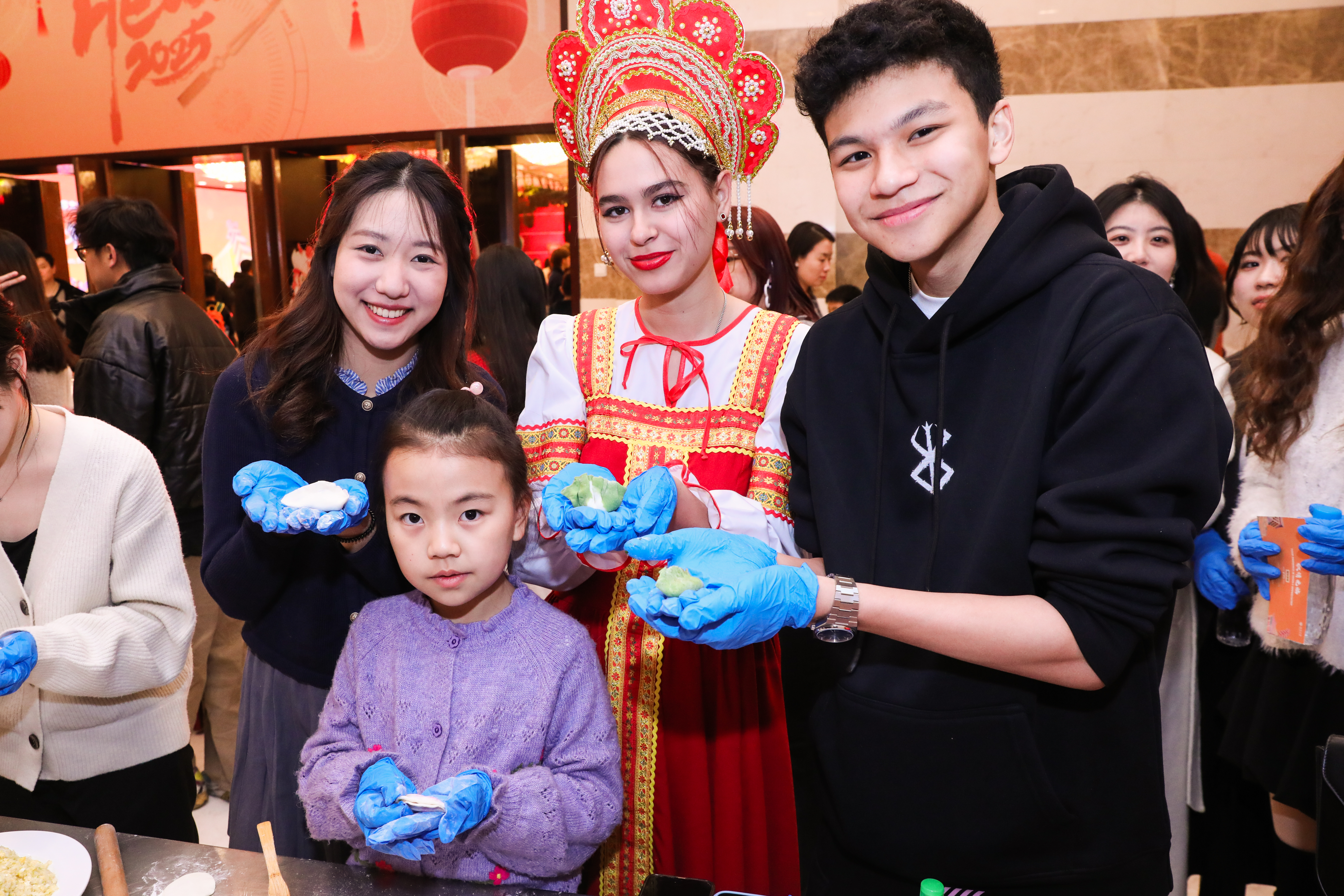 In the prelude to the festivities, international students engaged in traditional Chinese activities, such as writing calligraphy of auspicious characters, solving lantern riddles, and making dumplings, setting a festive tone for the evening.