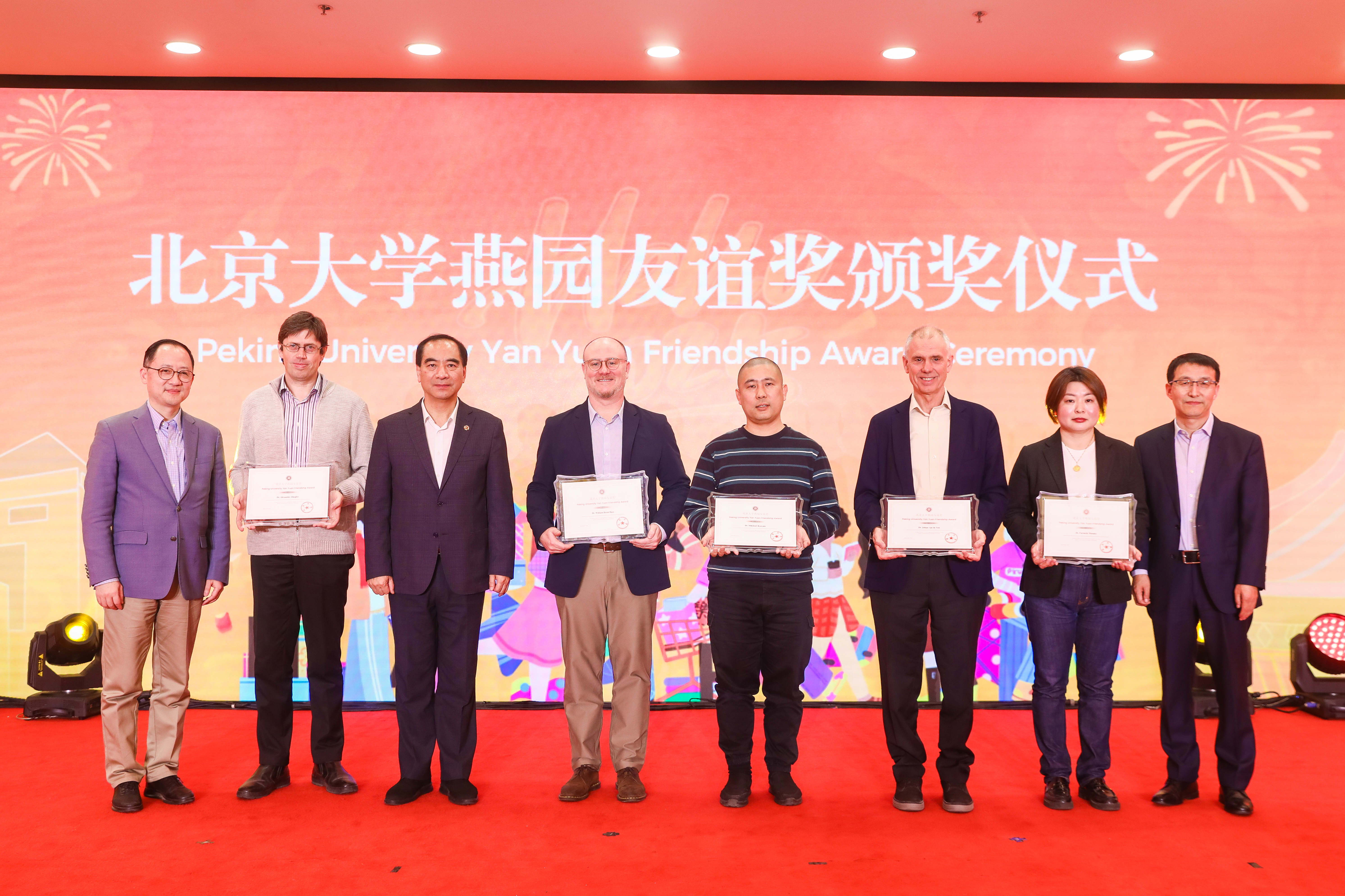 Midway through the celebration, the Peking University YanYuan Friendship Award Ceremony took place, honoring eight professors for their significant contributions to the university's double-first-class initiative and development.