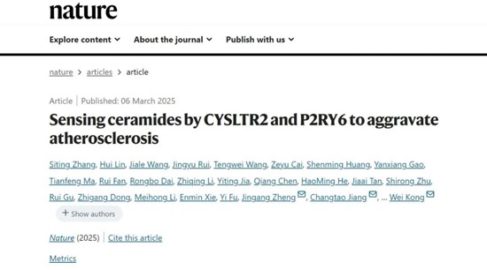 Kong’s research, titled “Sensing ceramides by CYSLTR2 and P2RY6 to aggravate atherosclerosis”, identified for the first time the endogenous receptors CYSLTR2 and P2RY6 for ceramides and uncovered the molecular mechanism where ceramides exacerbate atherosclerosis and atherosclerosis associated with chronic kidney disease through activating receptors and inflammasomes. This discovery provides a brand-new solution to residual lipid risk, suggesting targeting ceramide receptors is likely to become a crux in anti-atherosclerosis treatments.