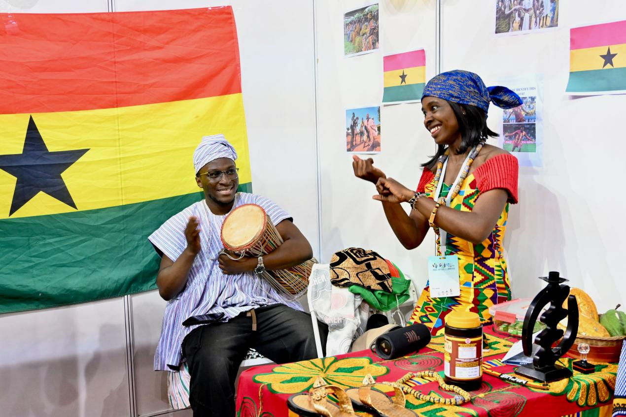 Michelle Maridiyah Abu, a visiting student from the School of Chinese as a Second Language, shared the perspective of the Ghanian students in ICF preparation. Featuring the Ghanian local game oware, played with marbles and a wooden base, and the popular Ghanaian candy choco milo, made from Ghanian cocoa powder, she credited support from the Ghanain embassy for a smooth preparation proccess, and hoped that "visitors can enrich their knowledge on our beautiful Ghanaian Culture".